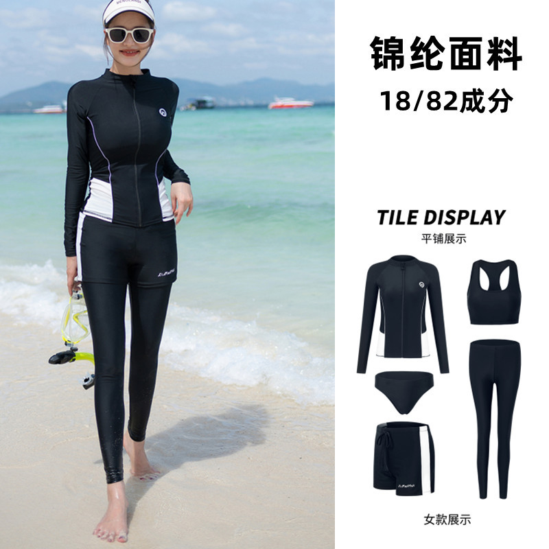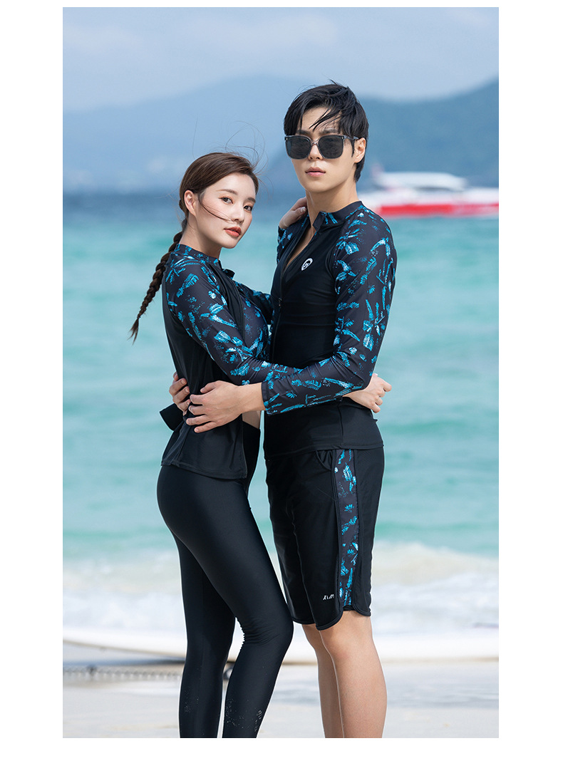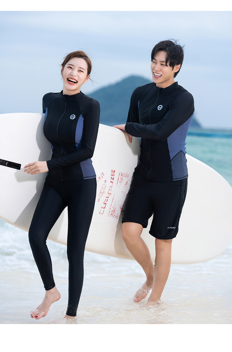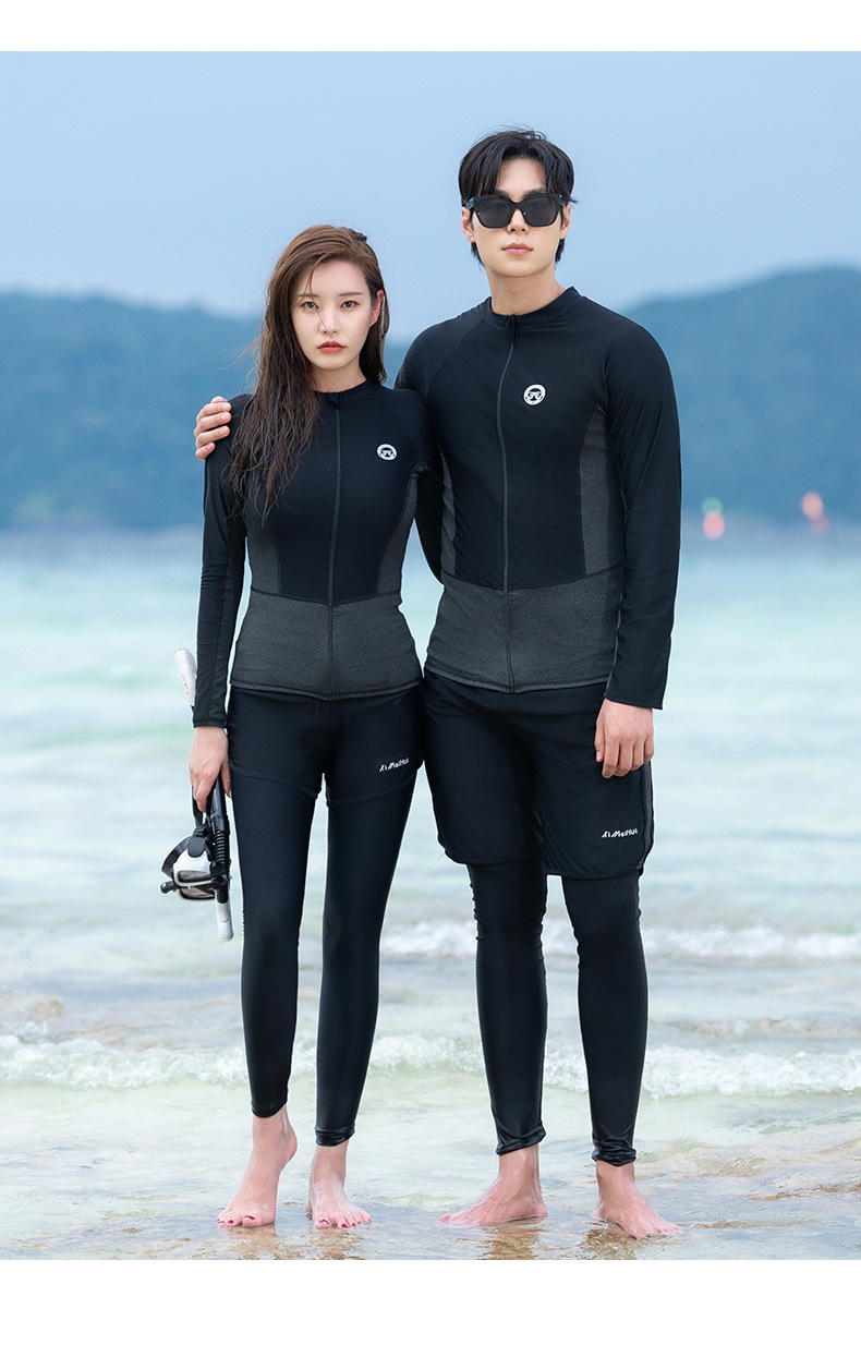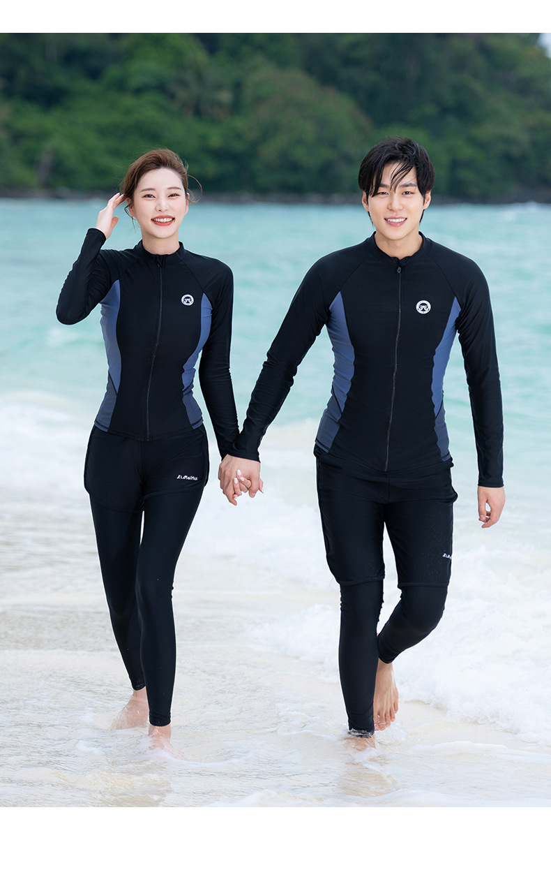 남성과 여성을 위한 커플 잠수복, 스플릿 긴팔 바지, 보수적 자외선 차단, 속건성, 슬리밍, 대형 스노클링 및 서핑 수영복스토어 가기