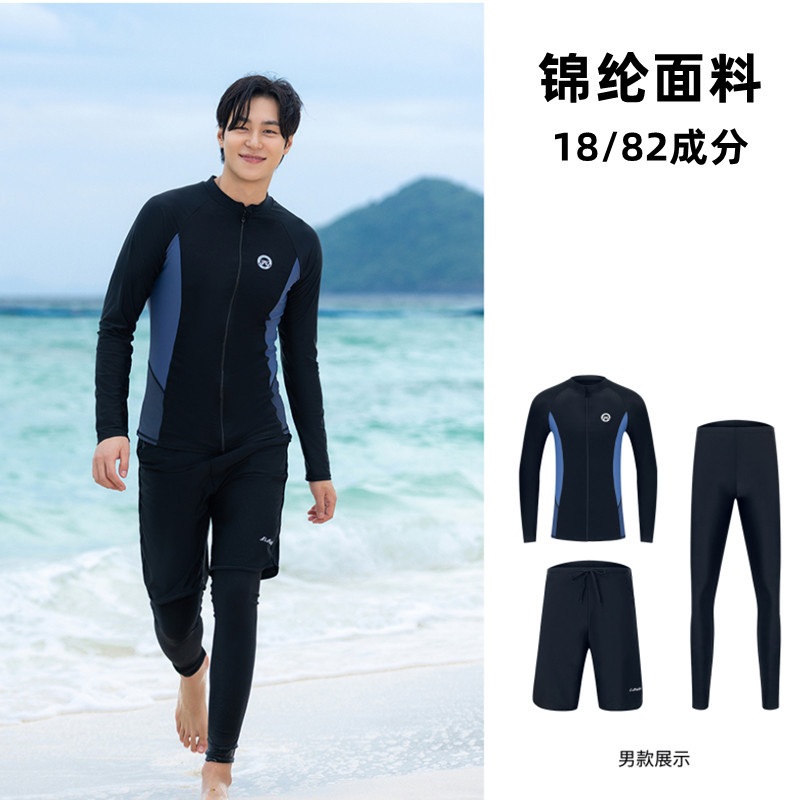 남성과 여성을 위한 커플 잠수복, 스플릿 긴팔 바지, 보수적 자외선 차단, 속건성, 슬리밍, 대형 스노클링 및 서핑 수영복