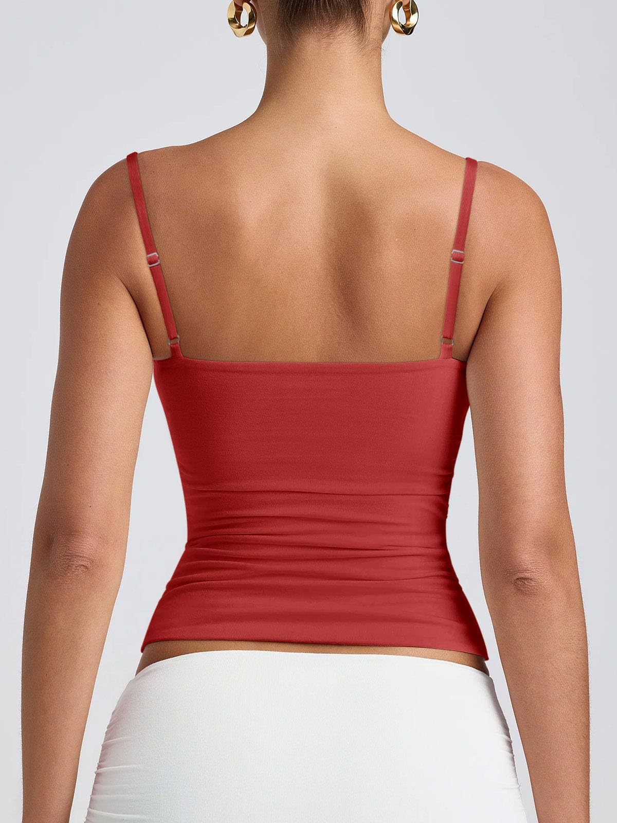 아마존 2025 새로운 유럽과 미국 여성의 낮은 크루 넥 조끼 조정 가능한 카미솔 여름 민소매 탑