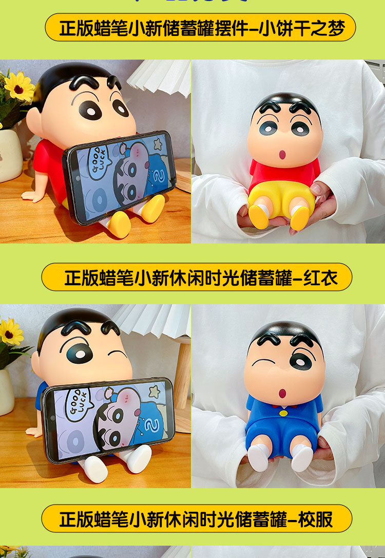 정품 만화 크레용신짱 휴대폰 홀더 저금통, 어린이용 입출금 가능 저금통, 가정용 데스크탑 장식품스토어 가기