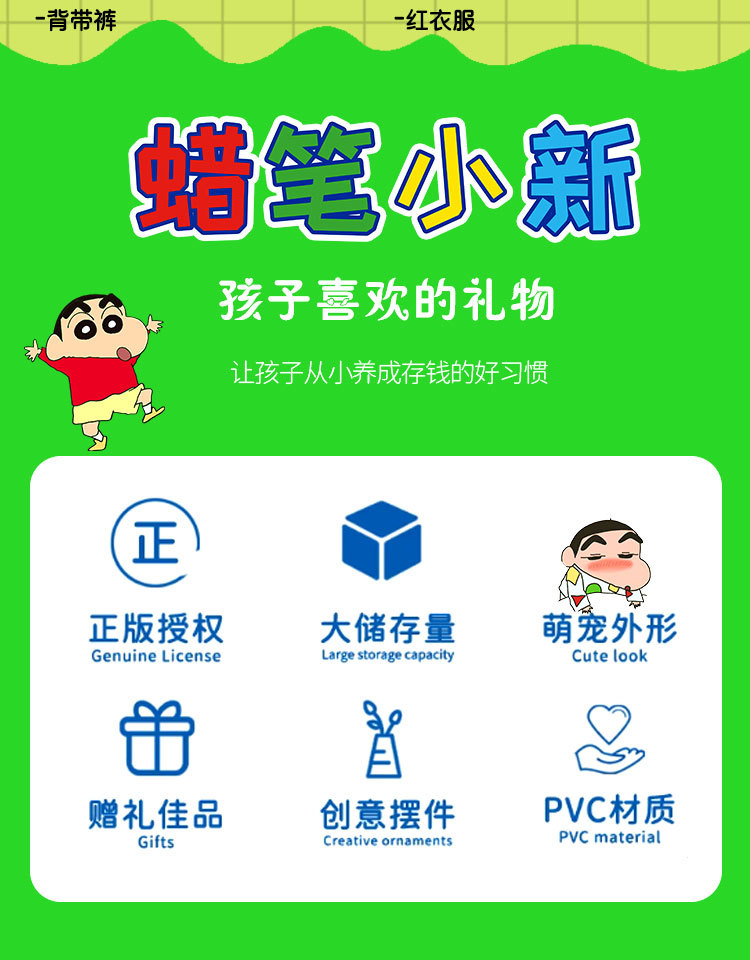 정품 만화 크레용신짱 휴대폰 홀더 저금통, 어린이용 입출금 가능 저금통, 가정용 데스크탑 장식품