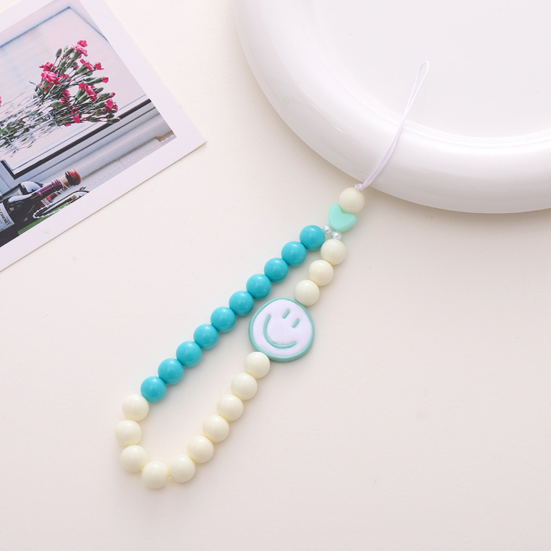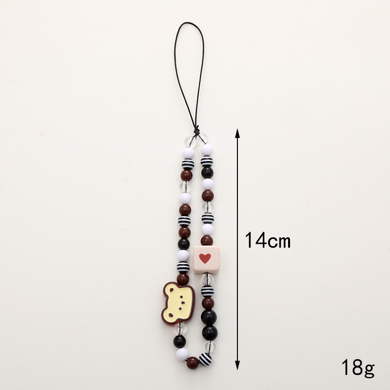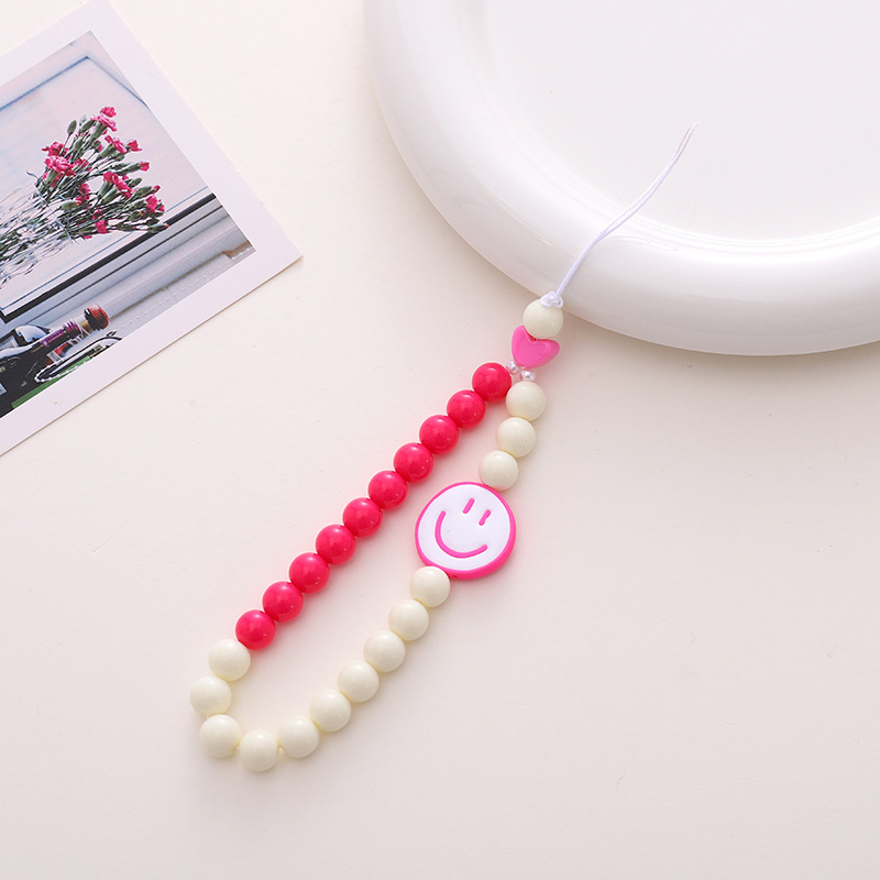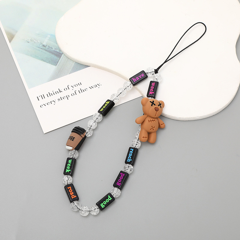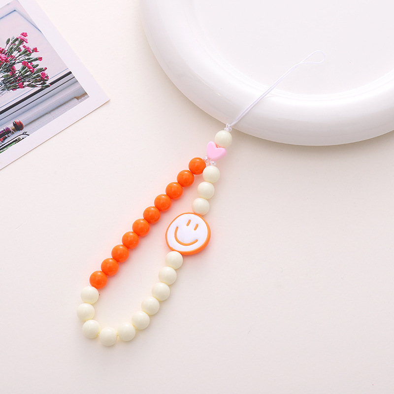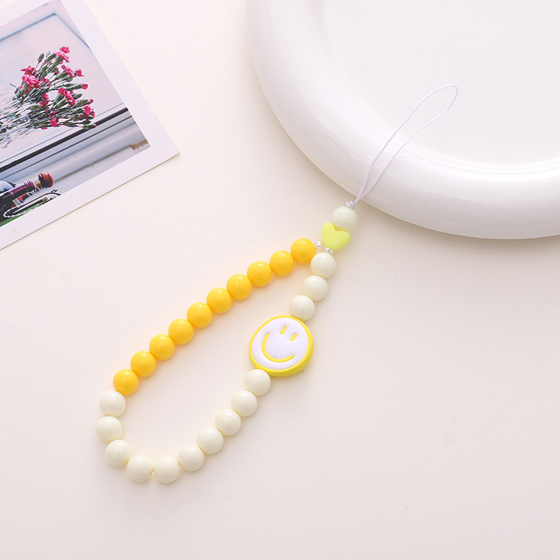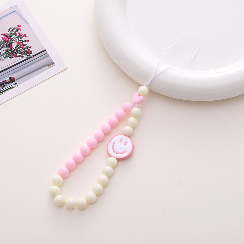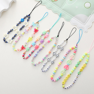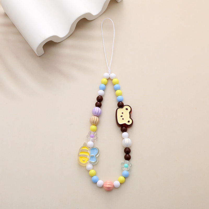 新款亚克力小熊串珠手机链diy笑脸手机挂绳防摔防丢短款手腕带