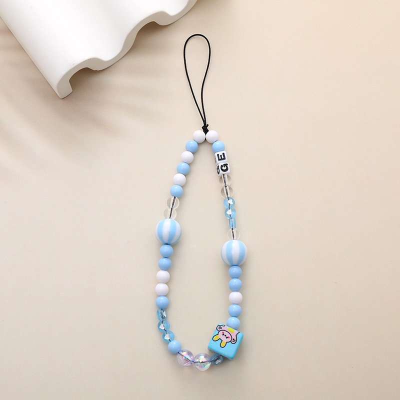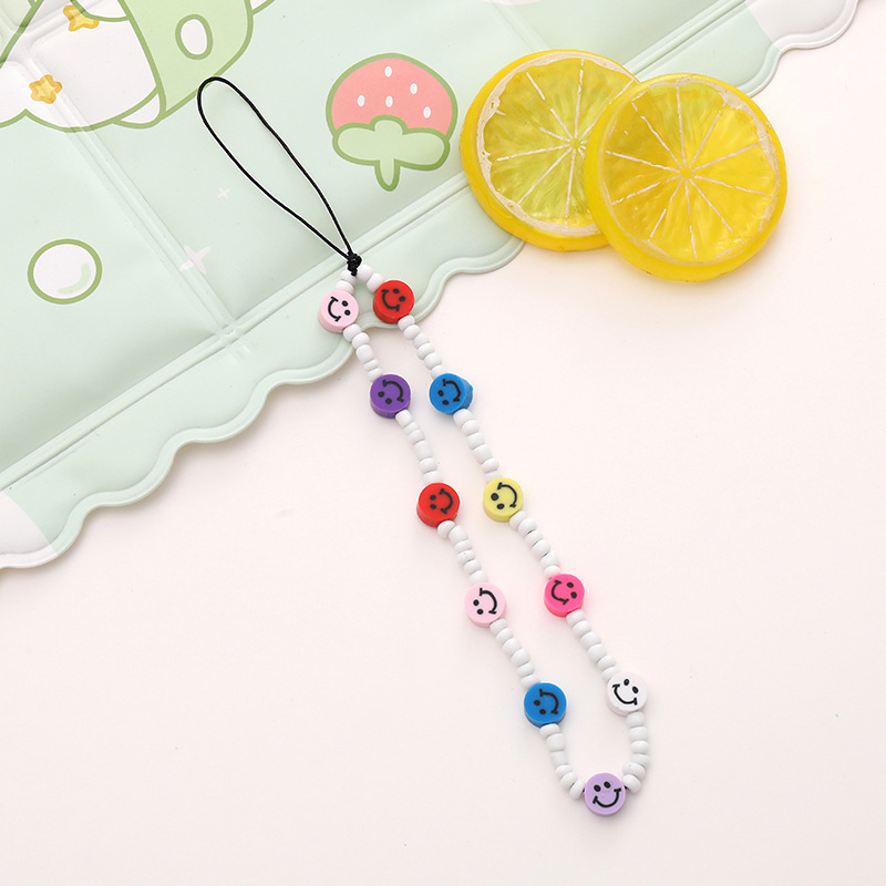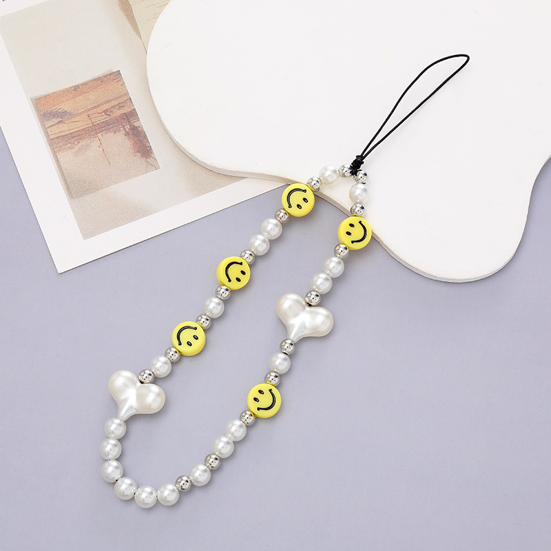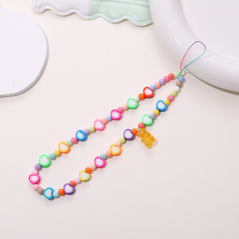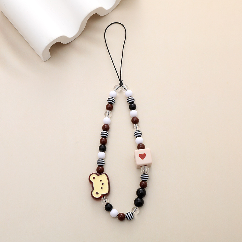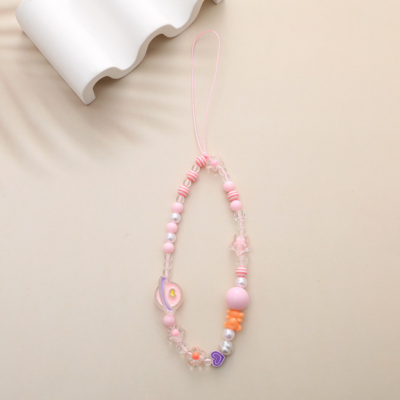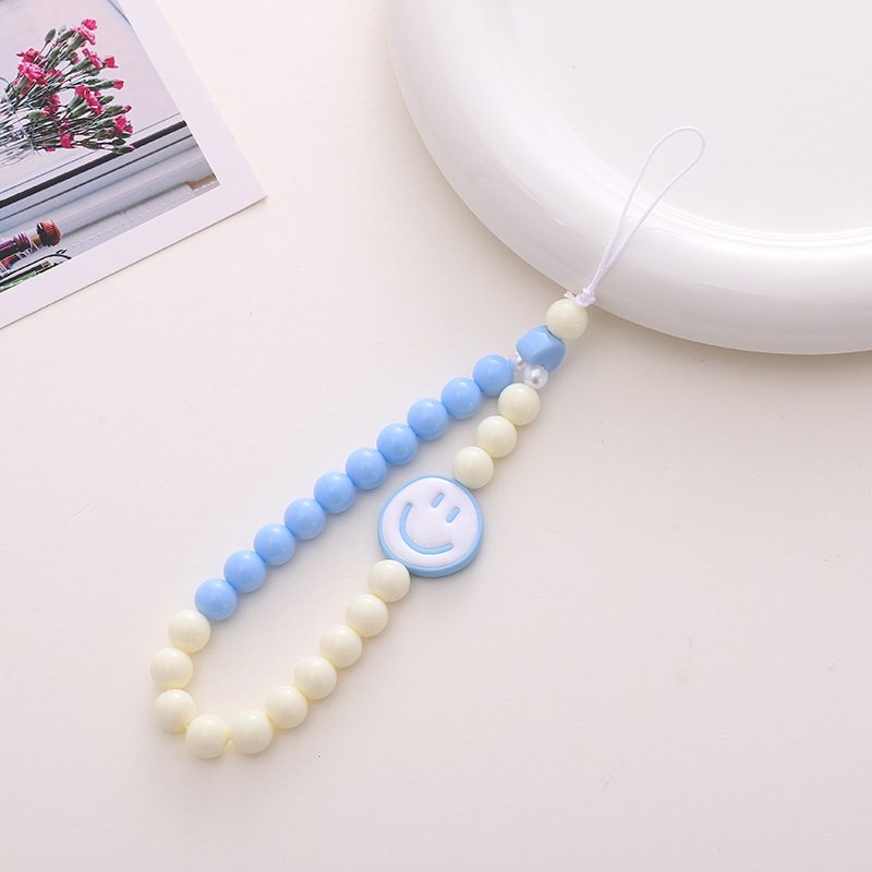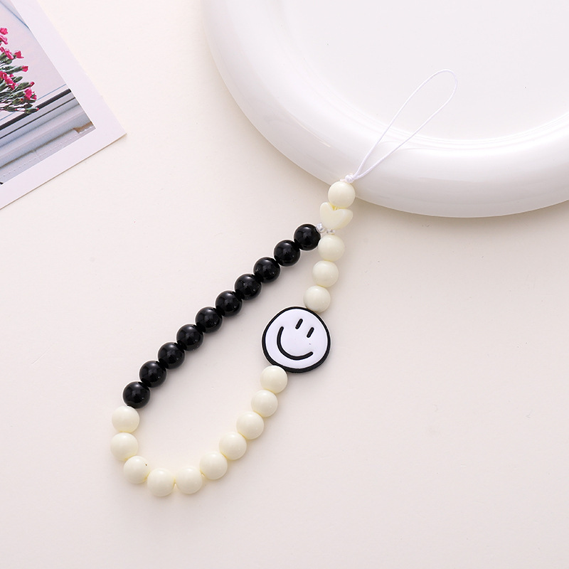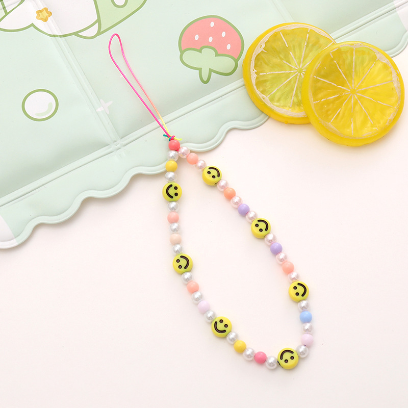 新款亚克力小熊串珠手机链diy笑脸手机挂绳防摔防丢短款手腕带