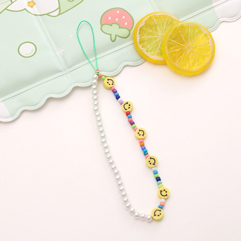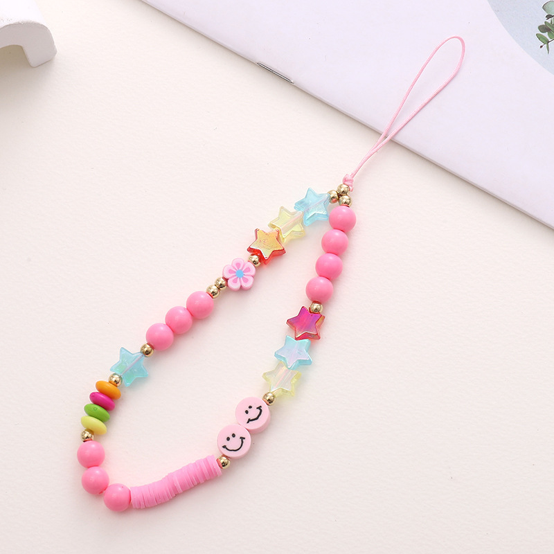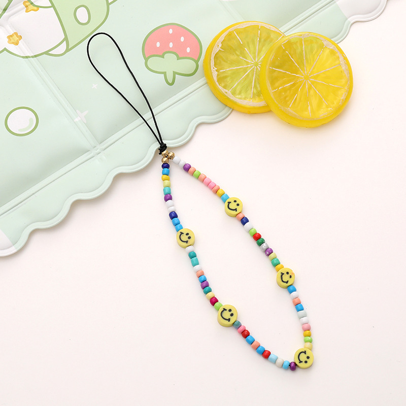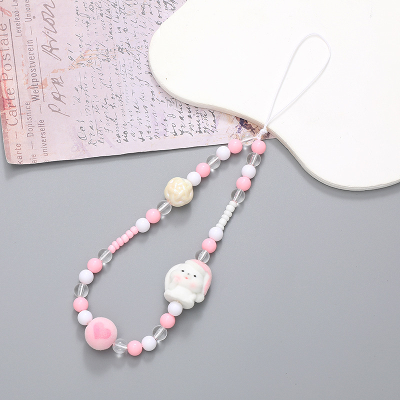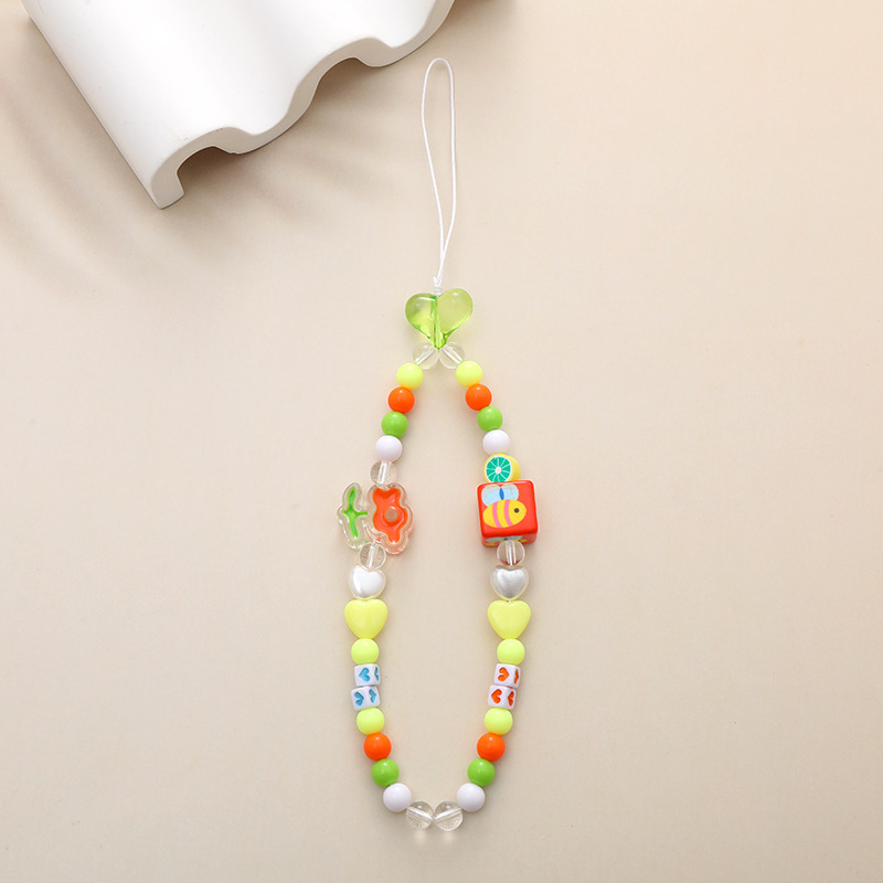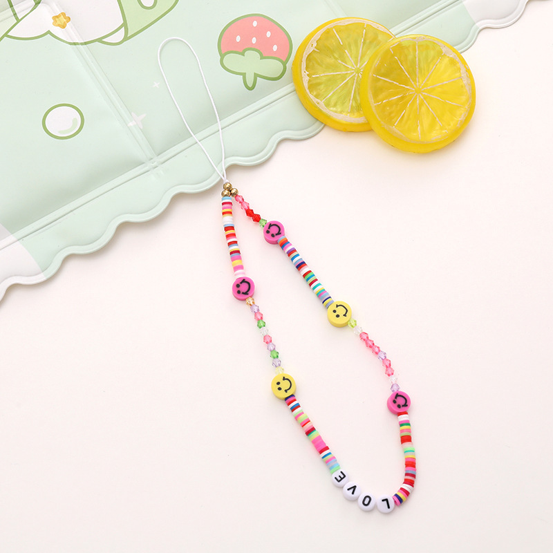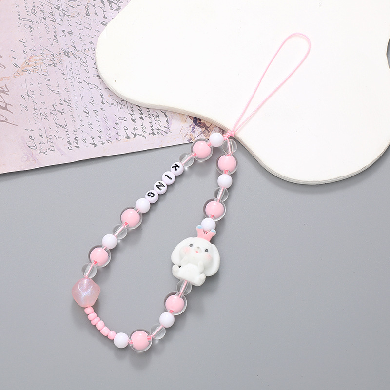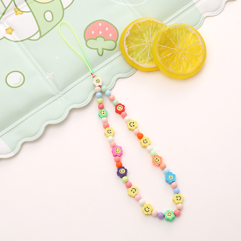 新款亚克力小熊串珠手机链diy笑脸手机挂绳防摔防丢短款手腕带
