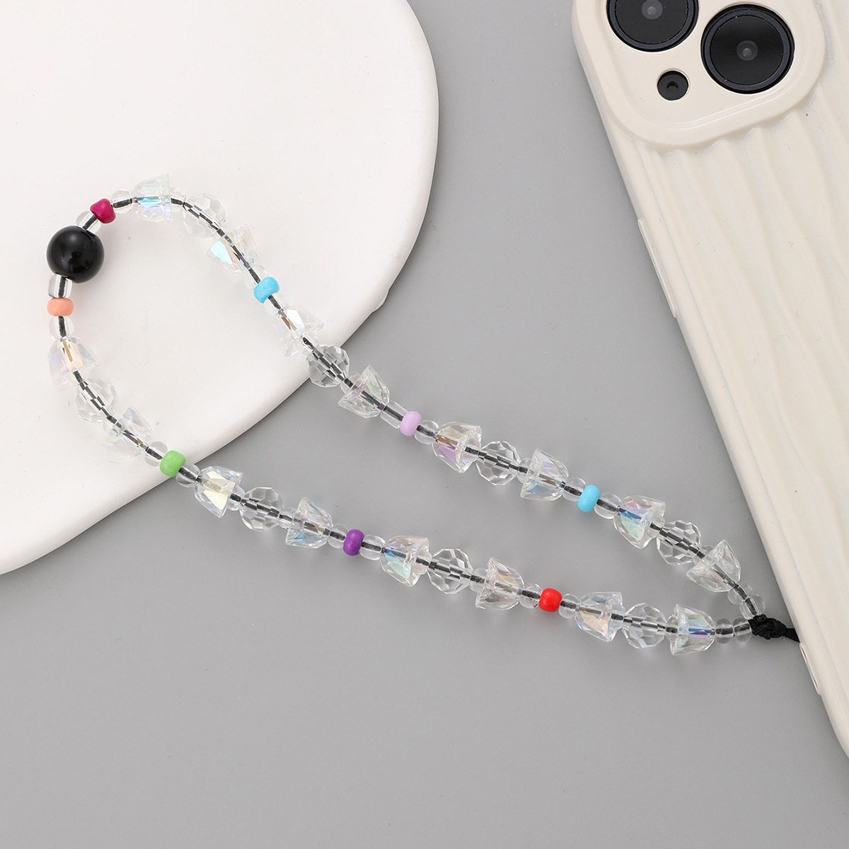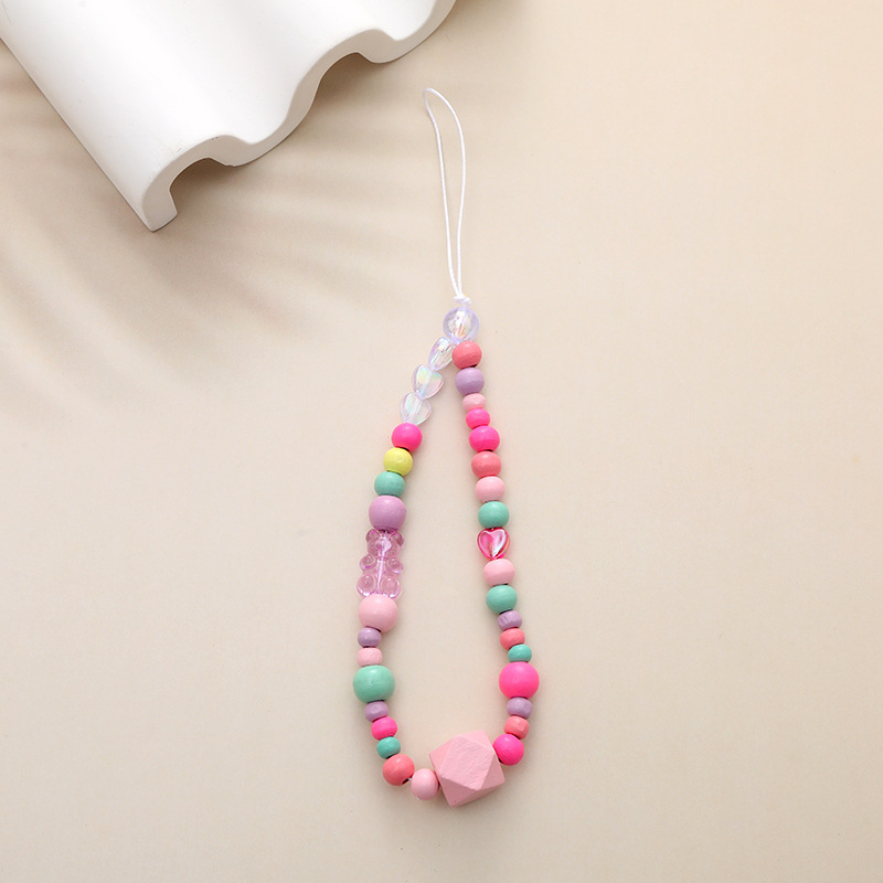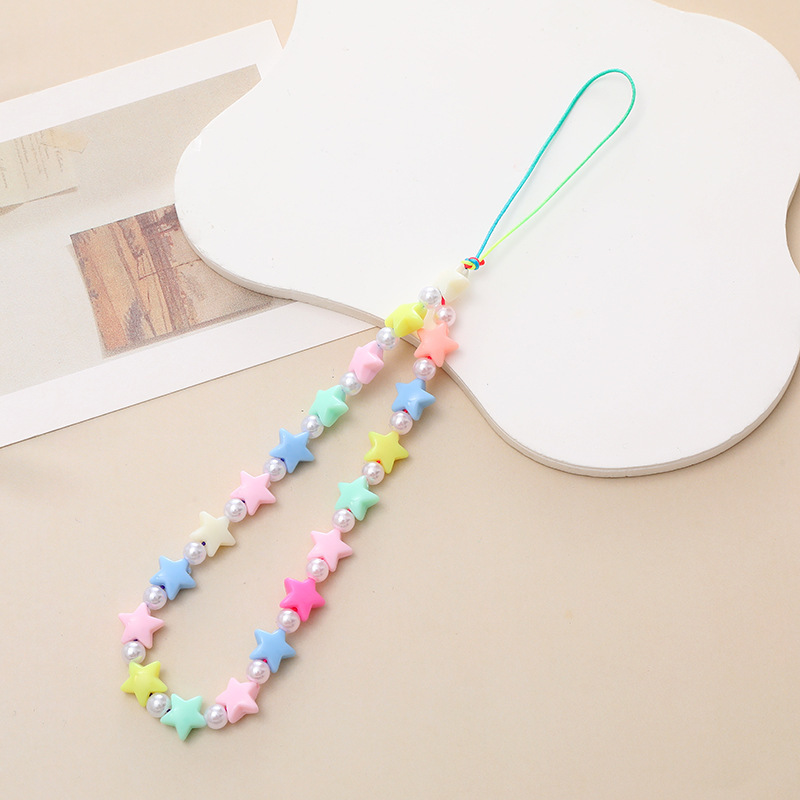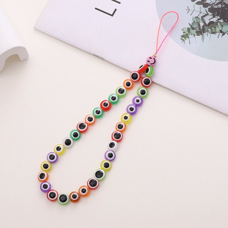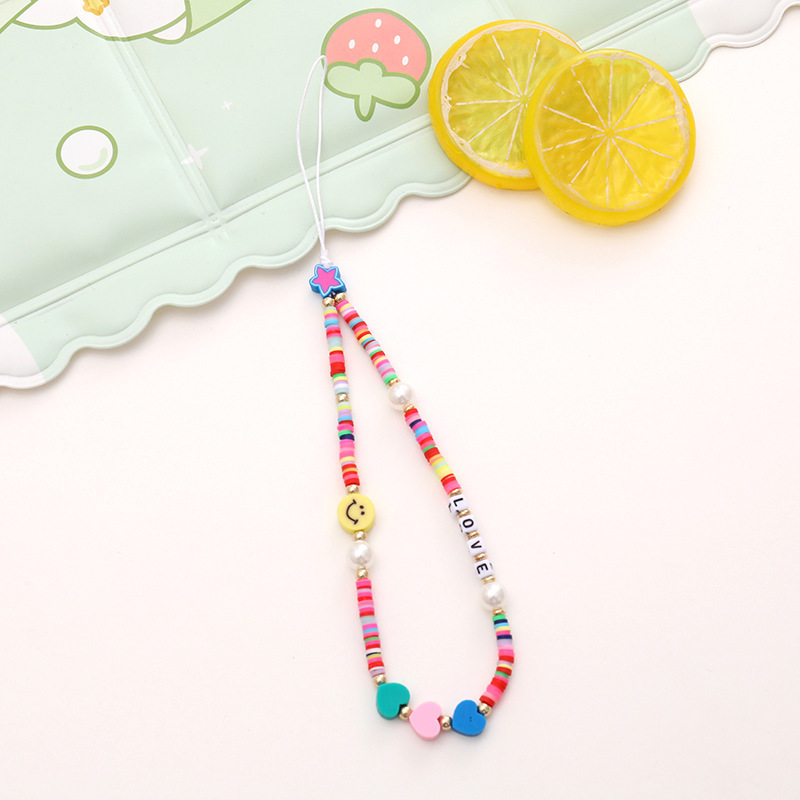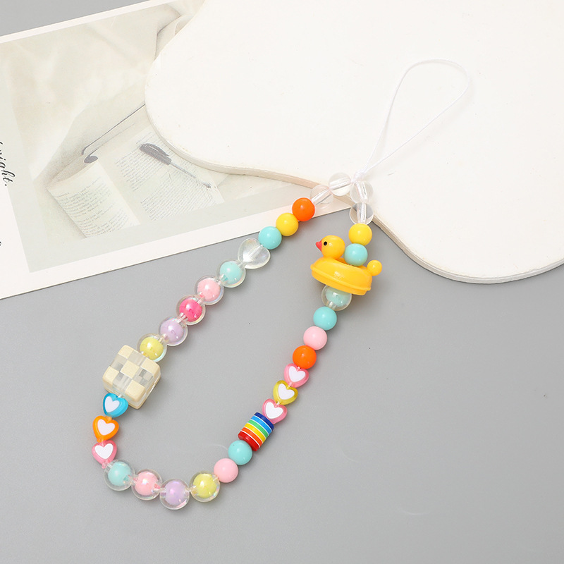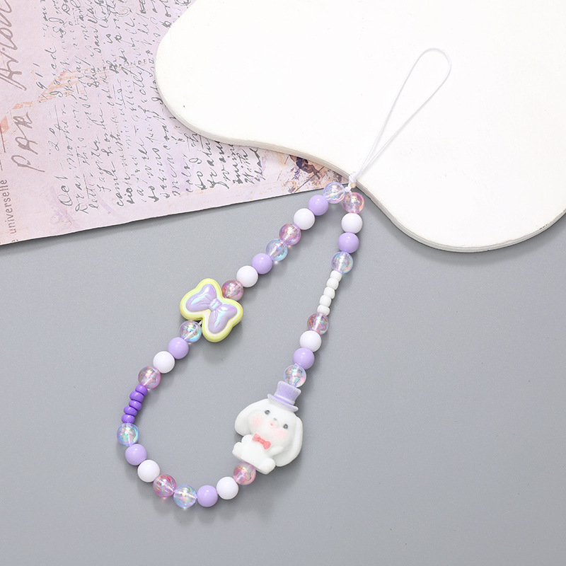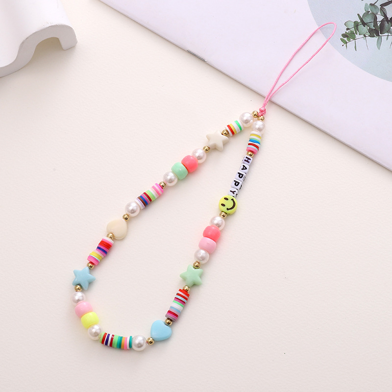 新款亚克力小熊串珠手机链diy笑脸手机挂绳防摔防丢短款手腕带