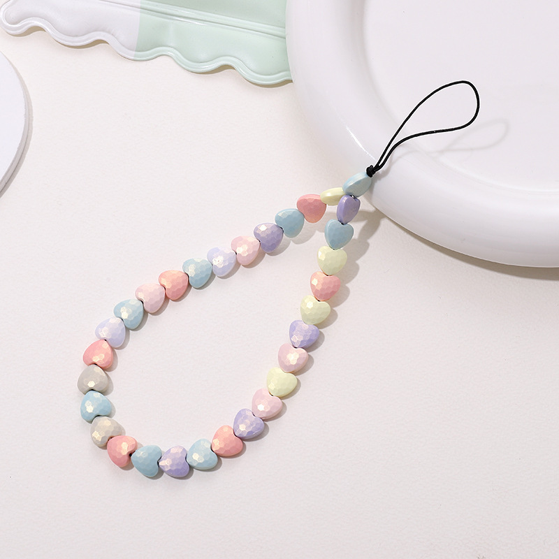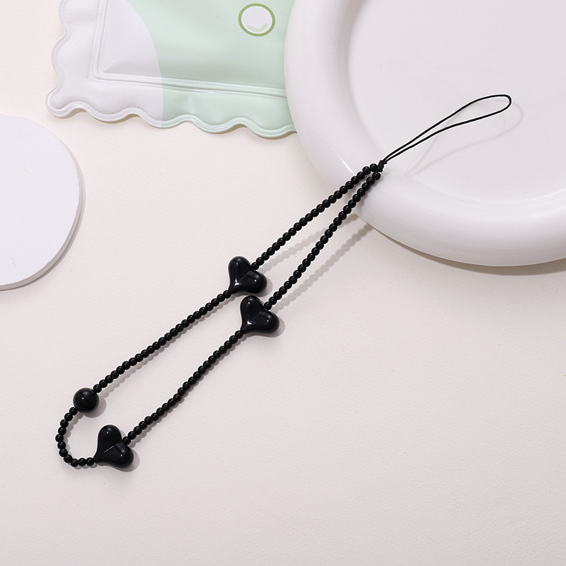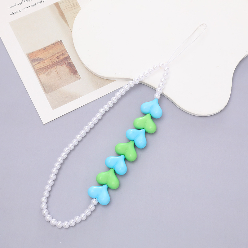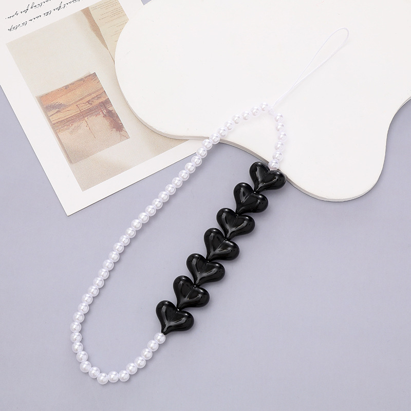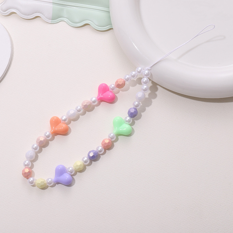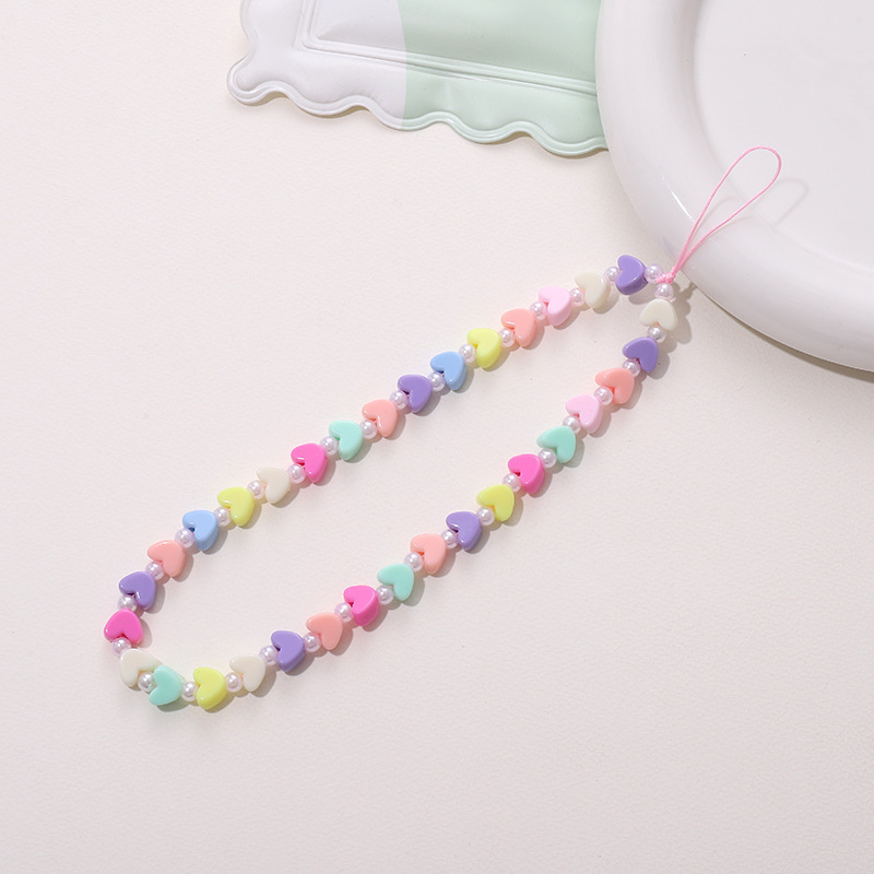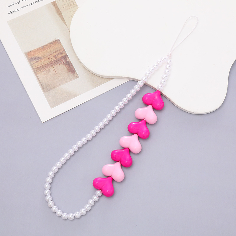 热卖网红串珠爱心手机链防丢防摔手机壳diy珍珠挂链短款手机挂绳