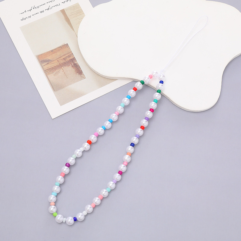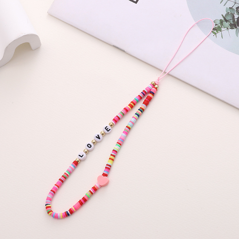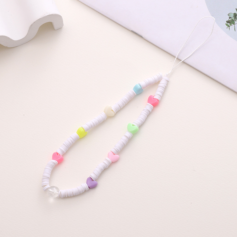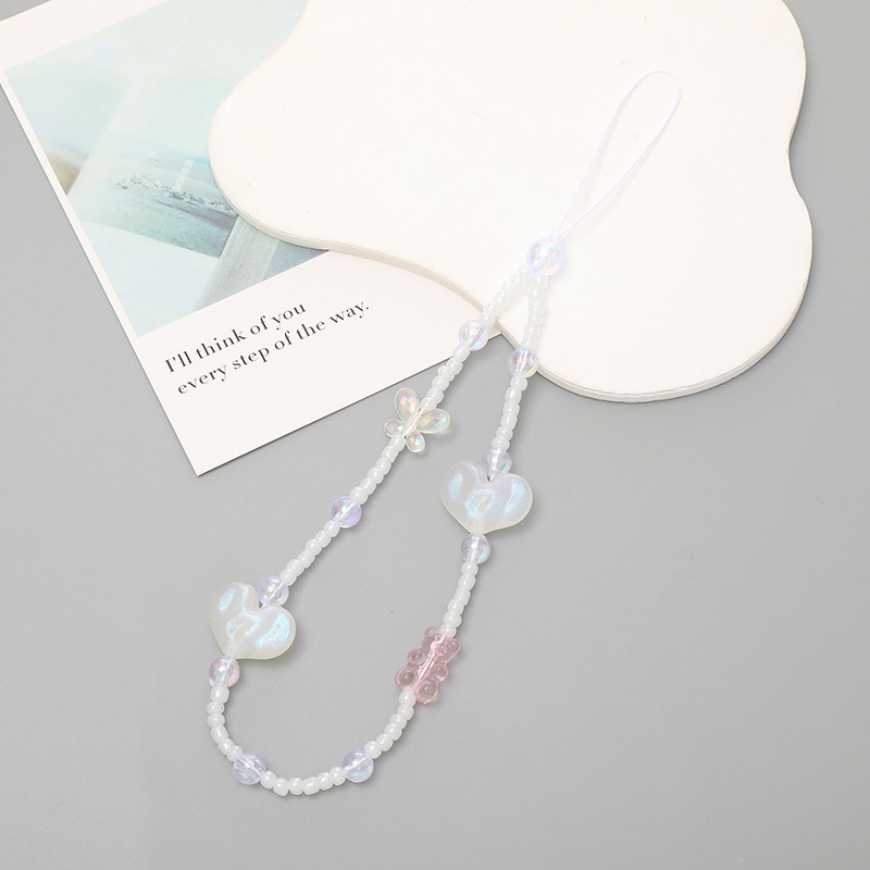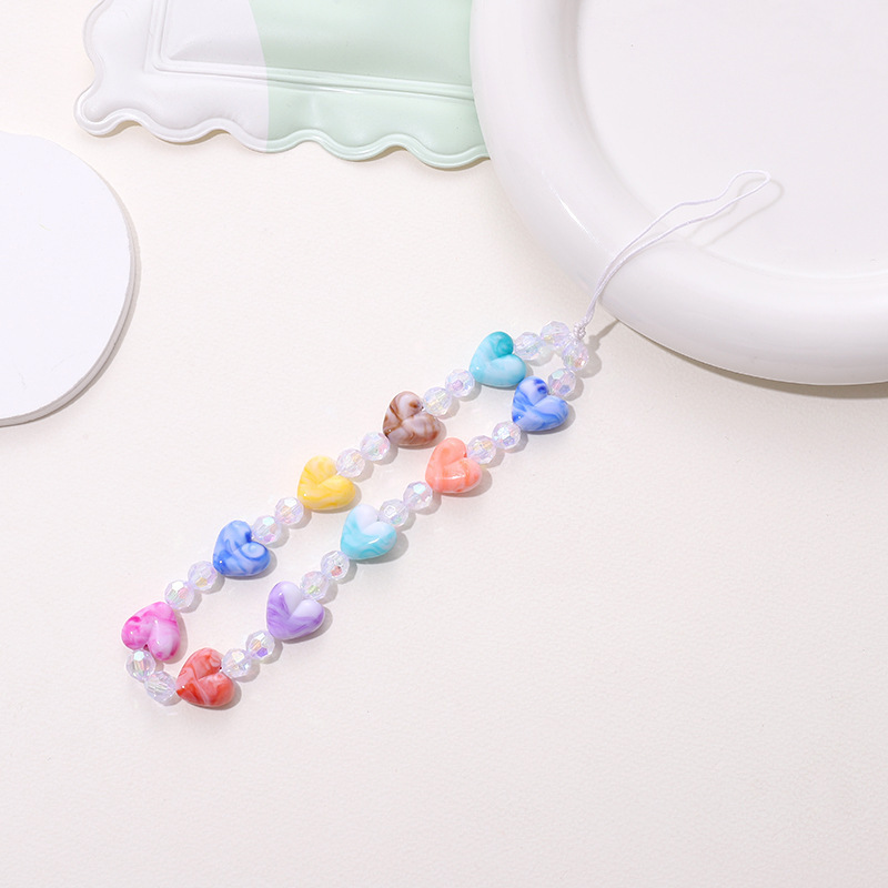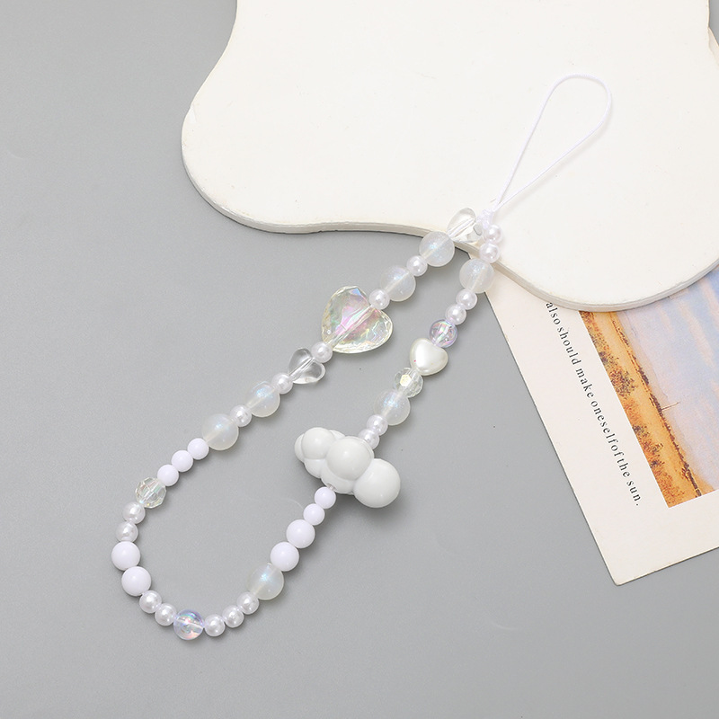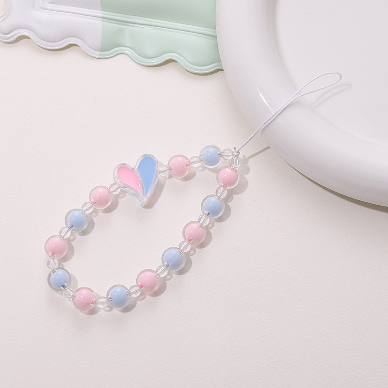 热卖网红串珠爱心手机链防丢防摔手机壳diy珍珠挂链短款手机挂绳