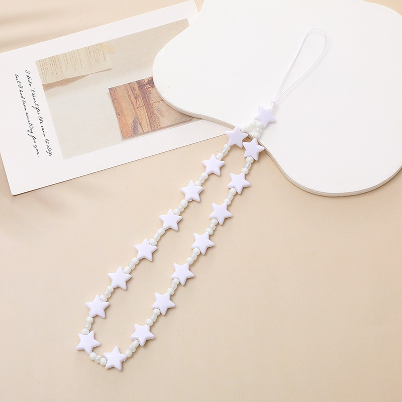 • ●K1042 오각별쌀구슬 휴대폰줄(화이트)●