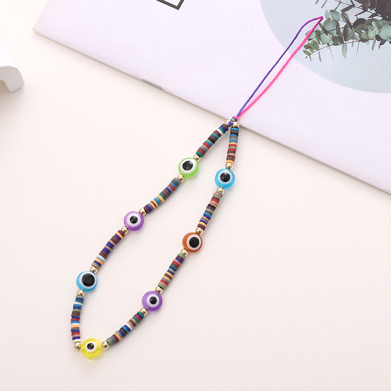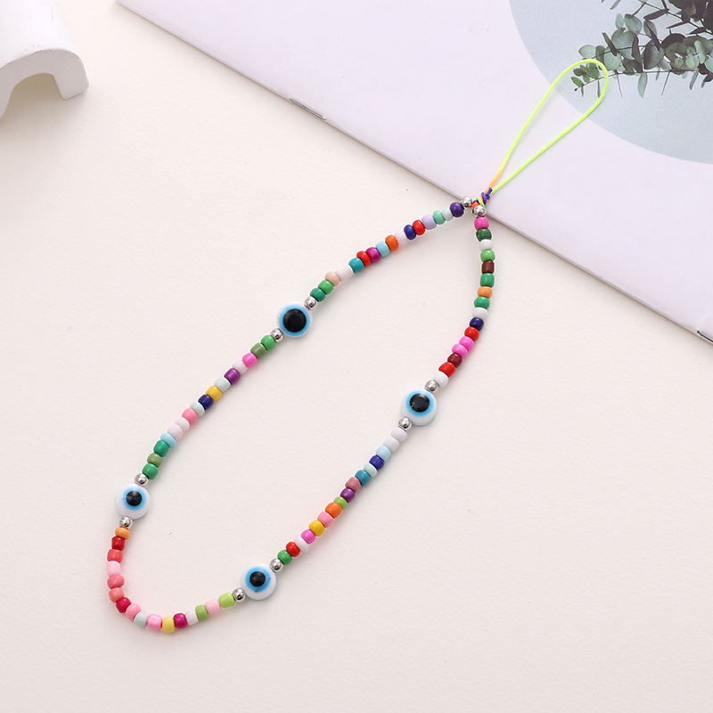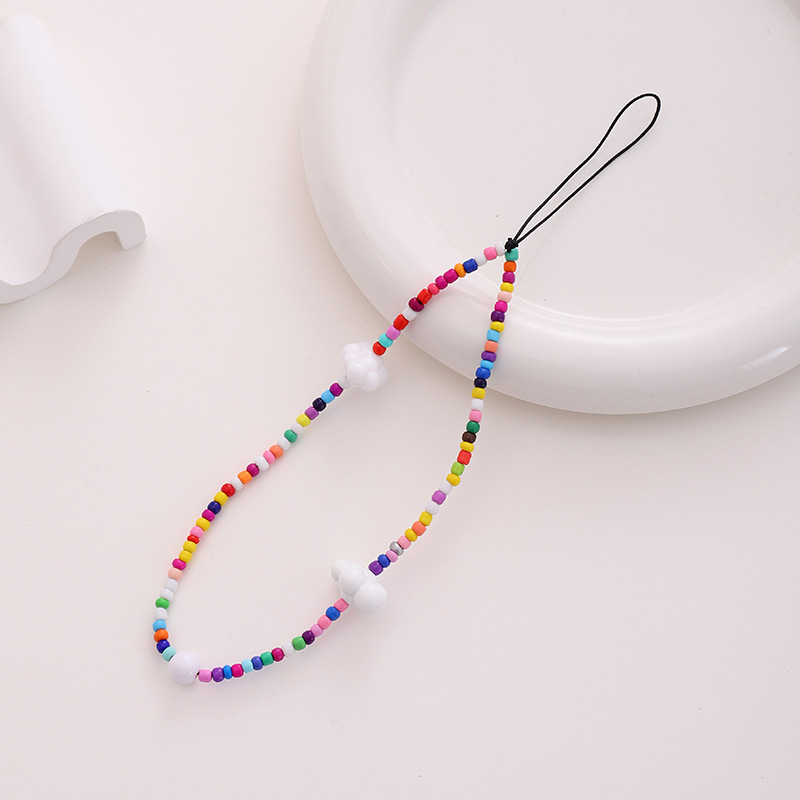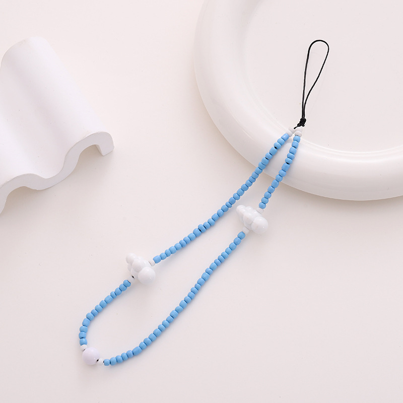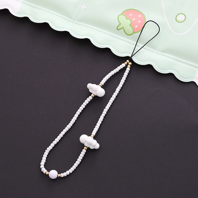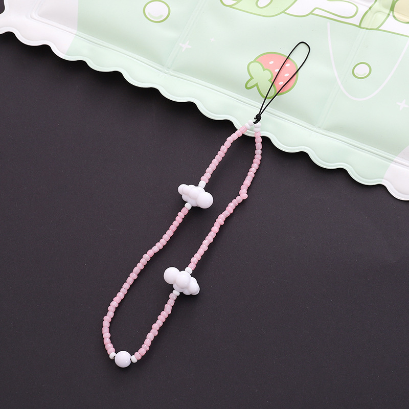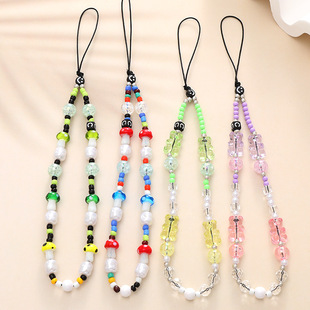 新款热卖彩色蘑菇串珠手机链diy小熊配饰手机壳防丢短款手腕带女