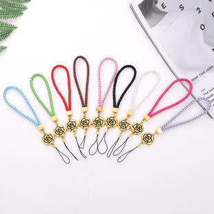 创意新款编织绳皮革手机挂绳玫瑰花吊坠手机壳挂饰防丢短款手绳女