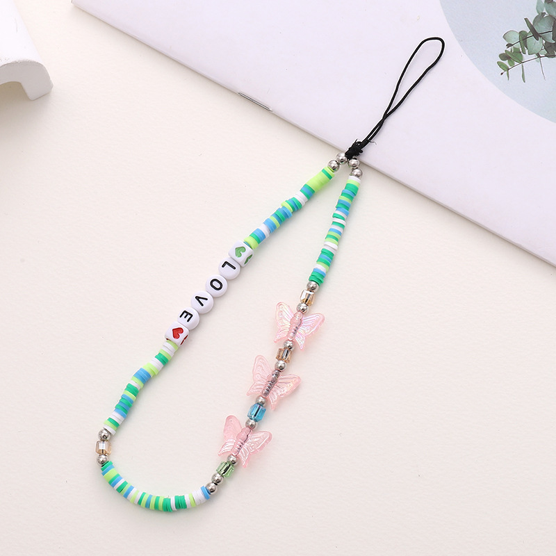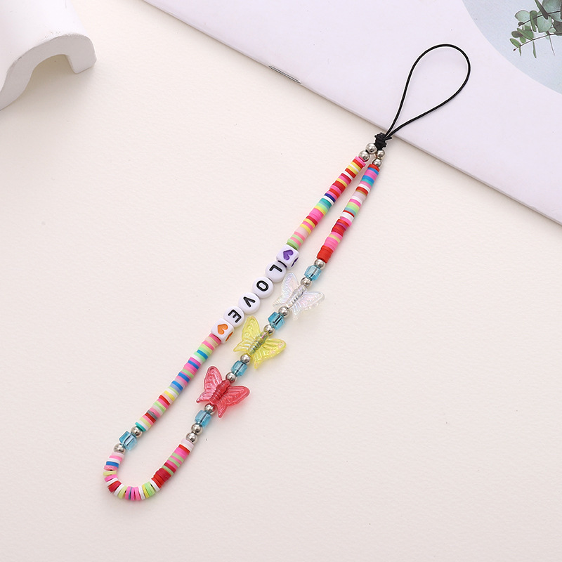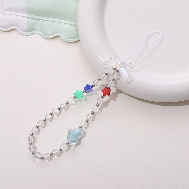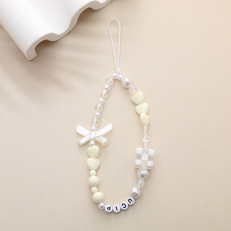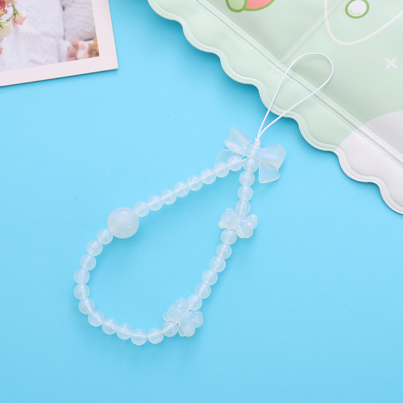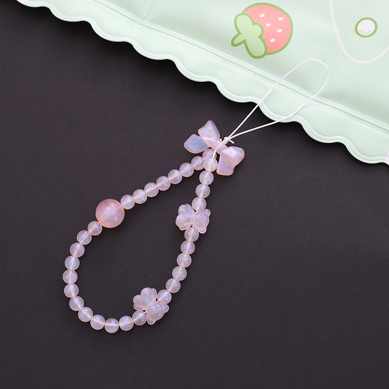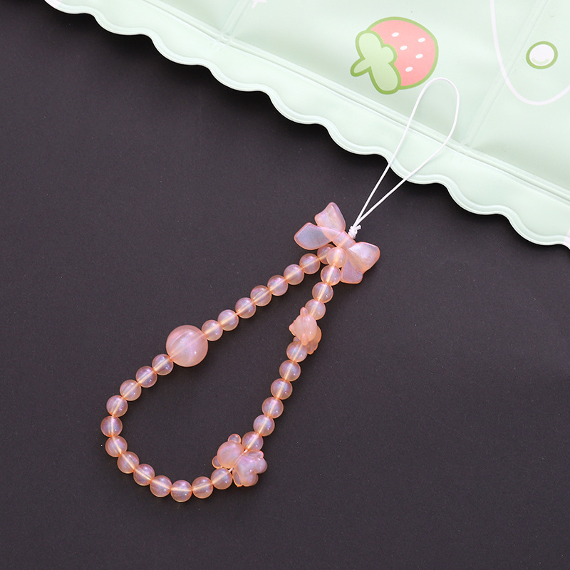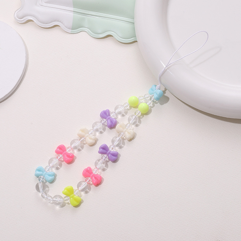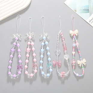 新款蝴蝶结手机链diy糖果串珠手机壳挂饰挂件短款防摔防丢手腕带