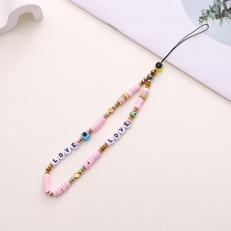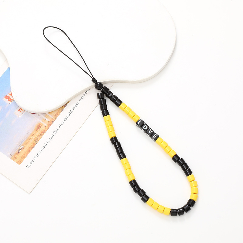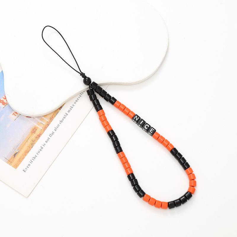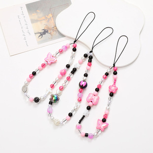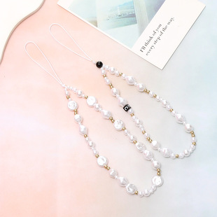 新款异型珍珠手机链手工串珠字母装饰短款手机挂绳手腕带挂饰挂件