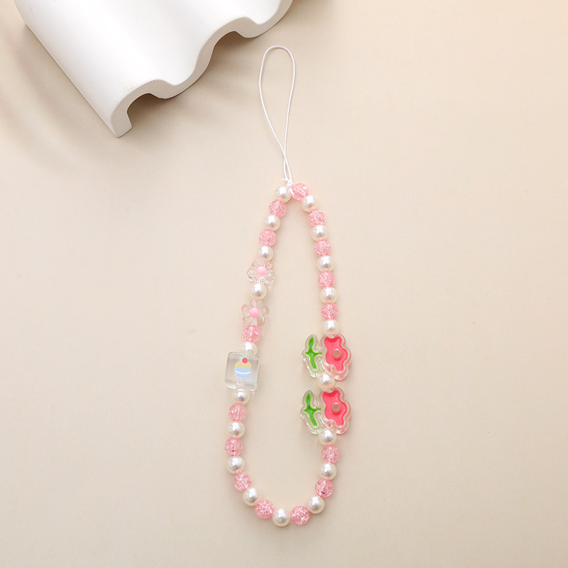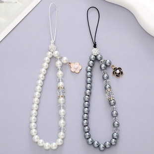 新款小香风手机链花朵吊坠手机挂绳手机壳串珠挂饰挂件防摔链女生