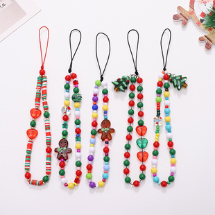 新款亚克力串珠圣诞款手机链圣诞树吊坠姜饼人短款手腕带防丢链条