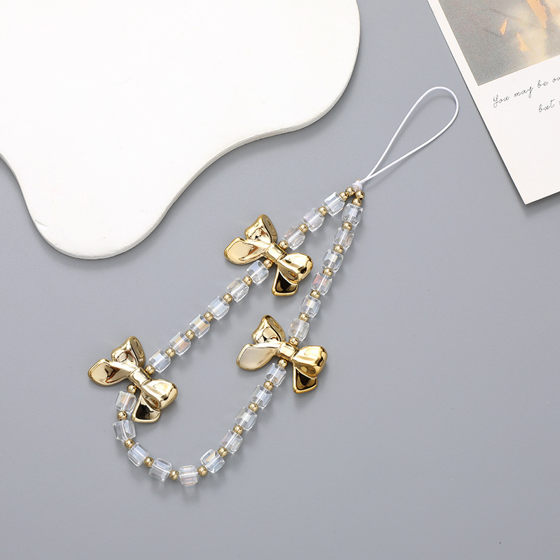 新款蝴蝶结串珠手机链手机壳挂饰挂件防摔防丢手腕带短款手机挂绳