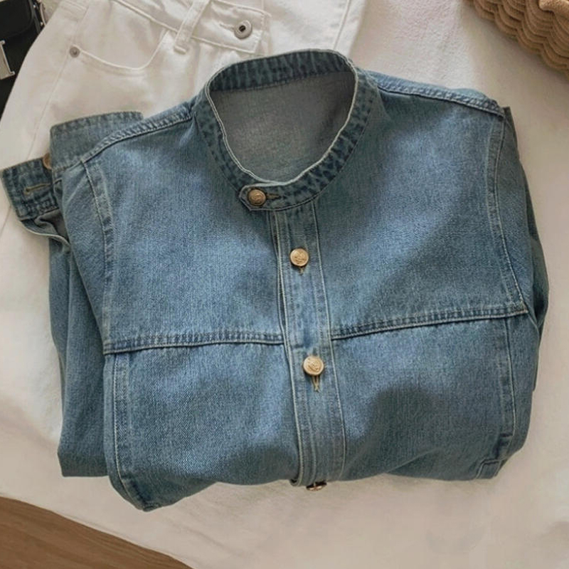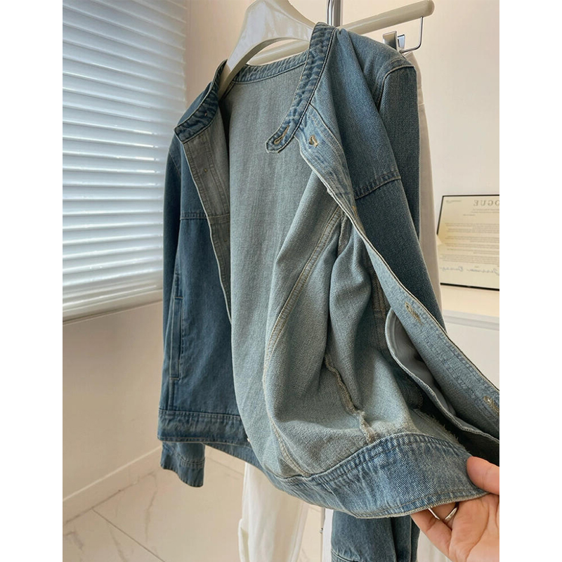 자기 유지 추천 ~ 블루 데님 코트 여성의 2025 년 봄과 가을 새로운 느슨한 슬림 코트스토어 가기