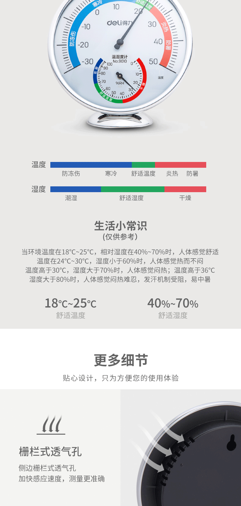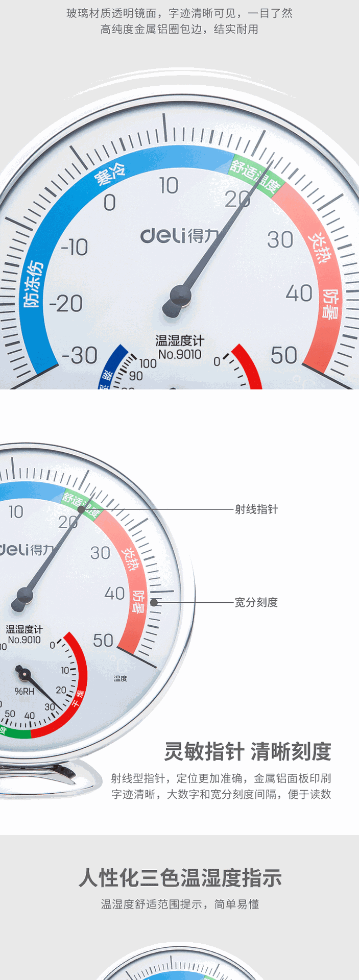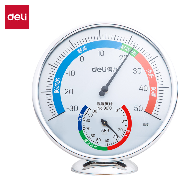 델리 9010 대형 다이얼 온습도계 실내외 온도계 탁상용 및 벽걸이 겸용 온습도계
