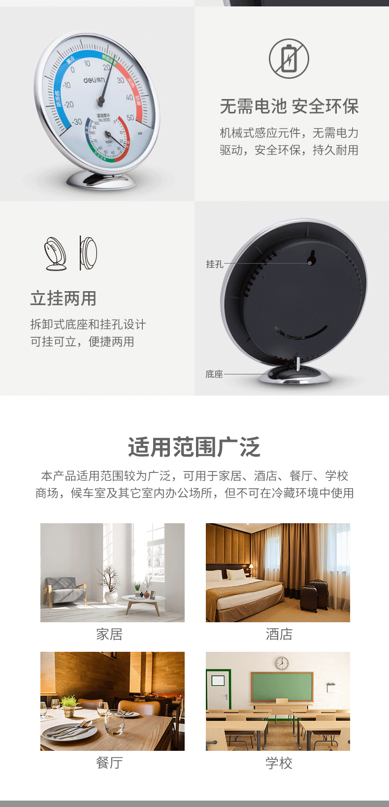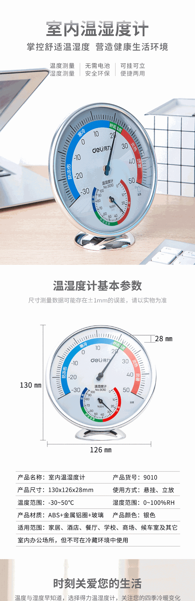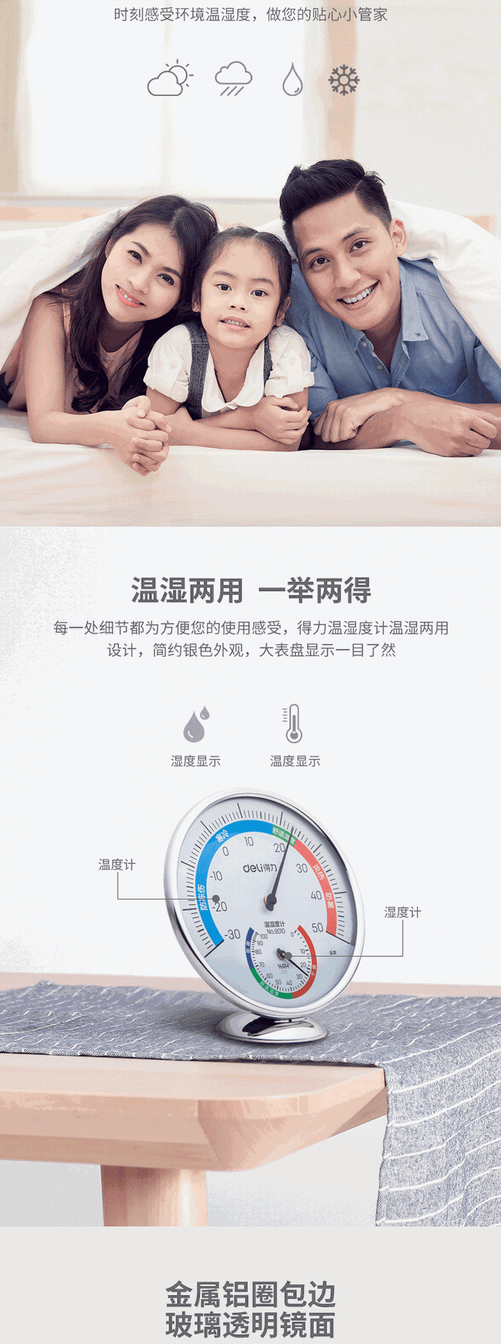 델리 9010 대형 다이얼 온습도계 실내외 온도계 탁상용 및 벽걸이 겸용 온습도계