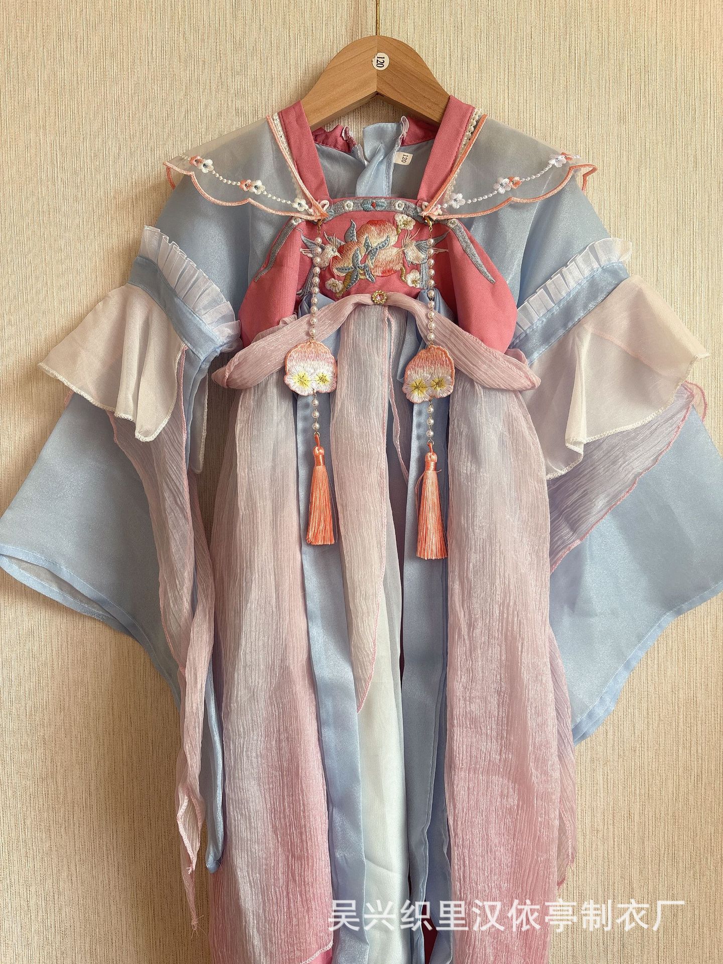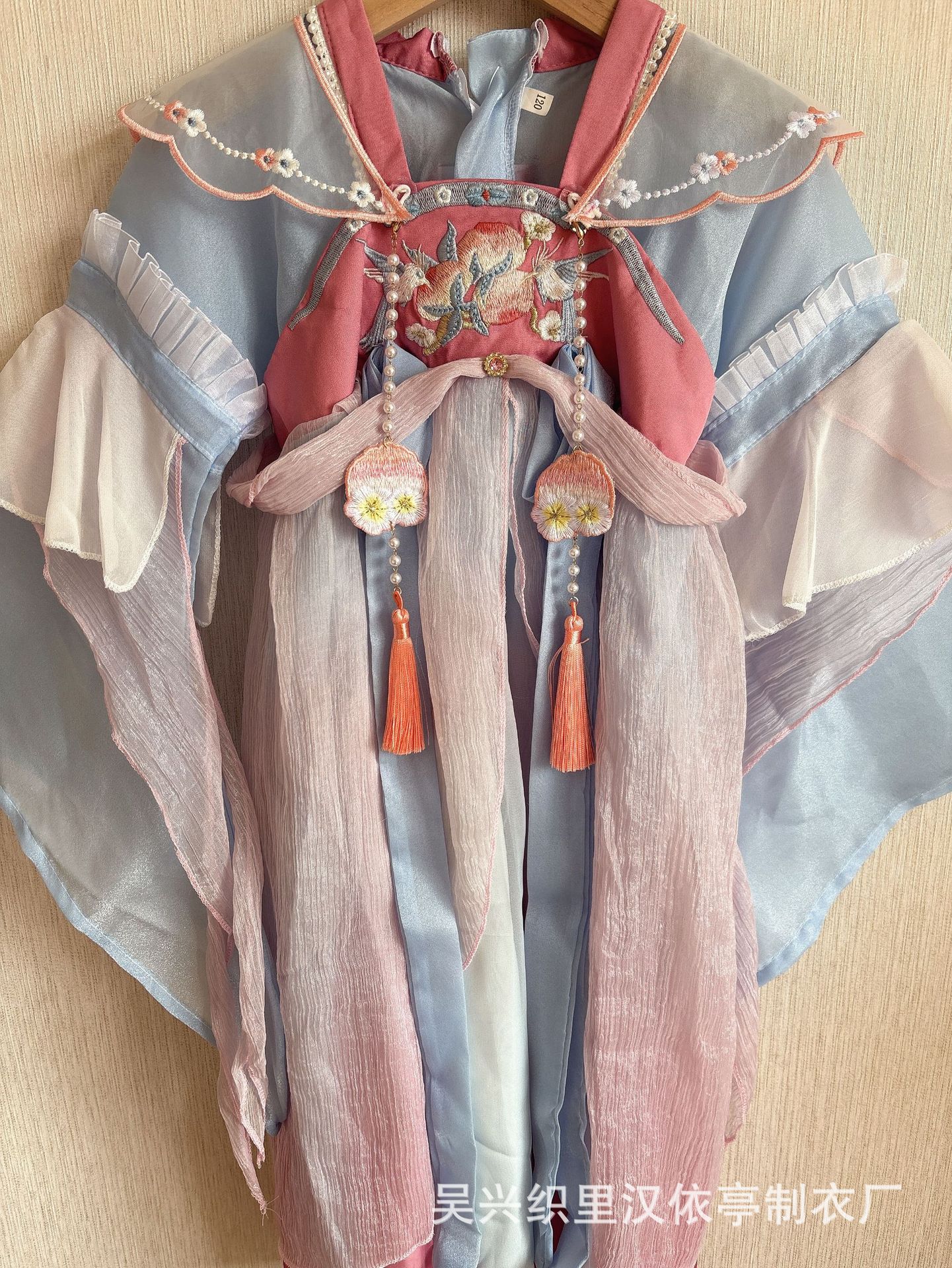 한푸 소녀 2025 봄과 가을 어린이 새로운 중국 스타일 원피스 골동품 탕 세트 슈퍼 요정 소녀 공주 치마