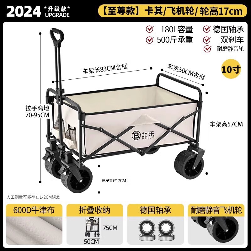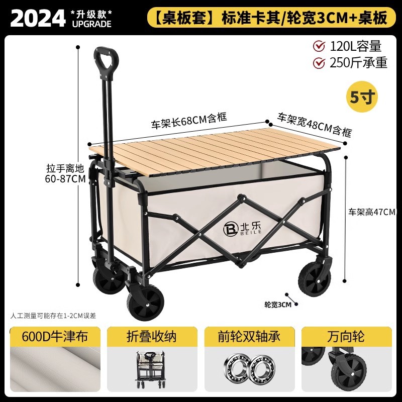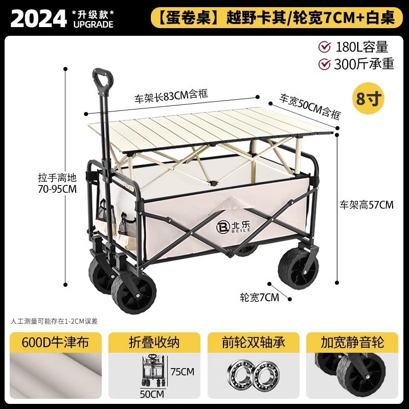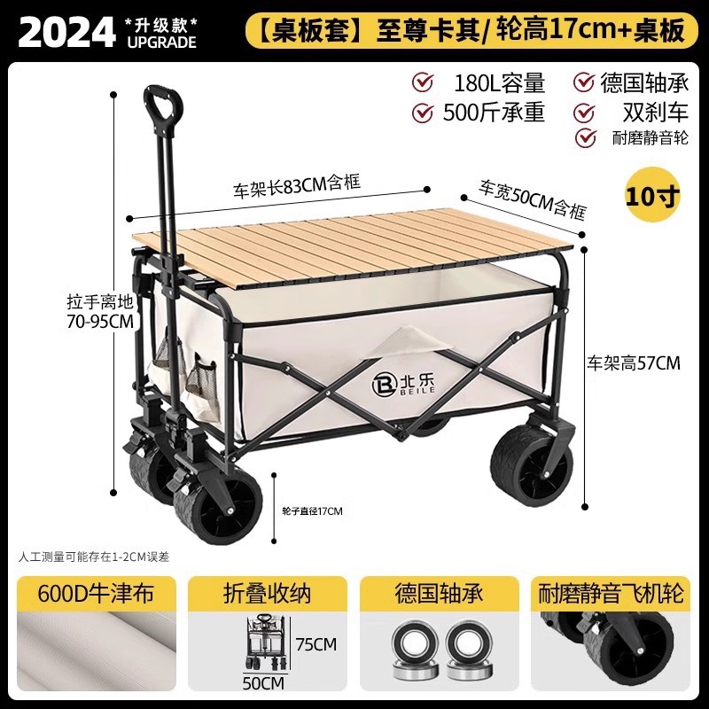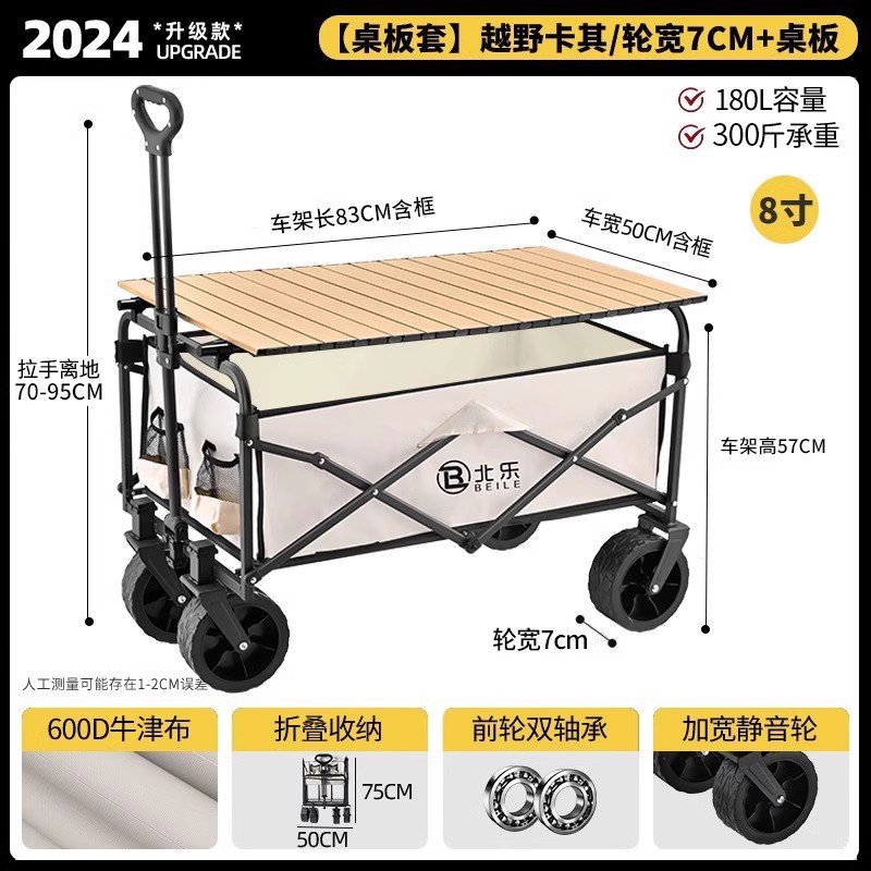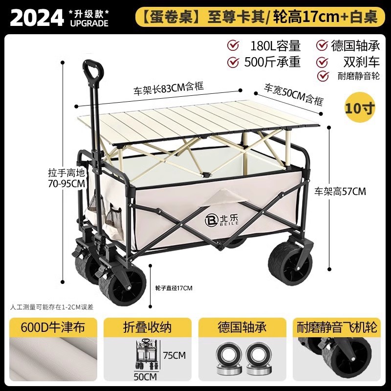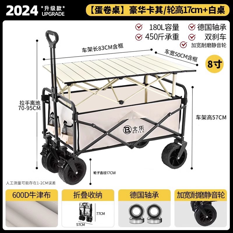 • [테이블 패키지] 슈프림 차이니즈 에어플레인 휠 - 카키 + 오프화이트 테이블 (직경 17cm 충격흡수 휠/더 노동력 절약/더블 브레이크)