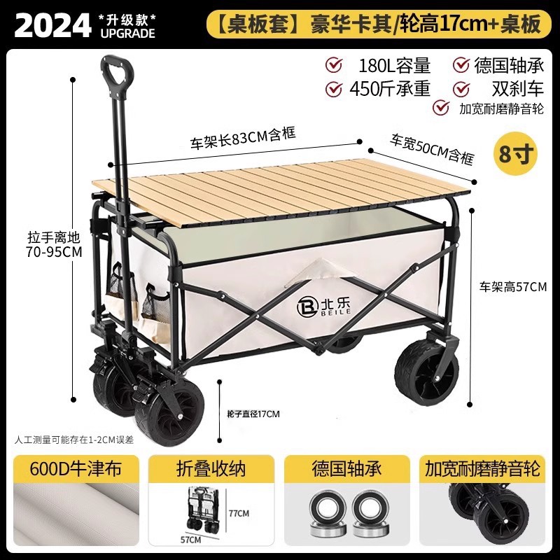 • [테이블 패키지] 럭셔리 모델 - 카키 + 테이블 보드 8inch개(직경 17cm 충격 흡수 휠/더 많은 노동력 절약/이중 브레이크)
