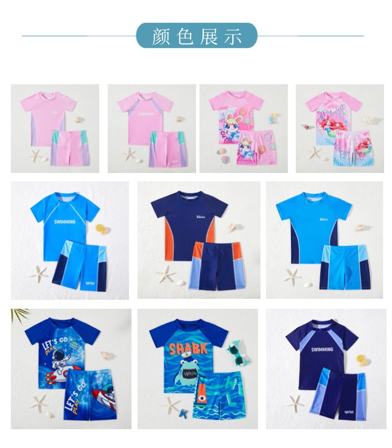 새로운 분할 세트 선 스크린 수영복 귀여운 만화 인쇄 어린이 비치 스파 수영복스토어 가기