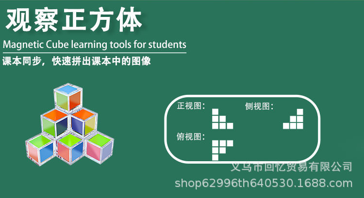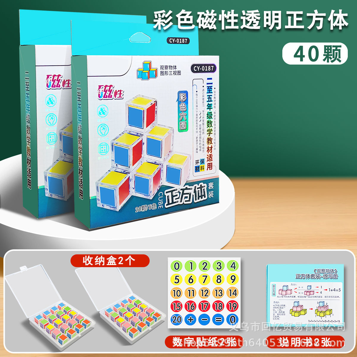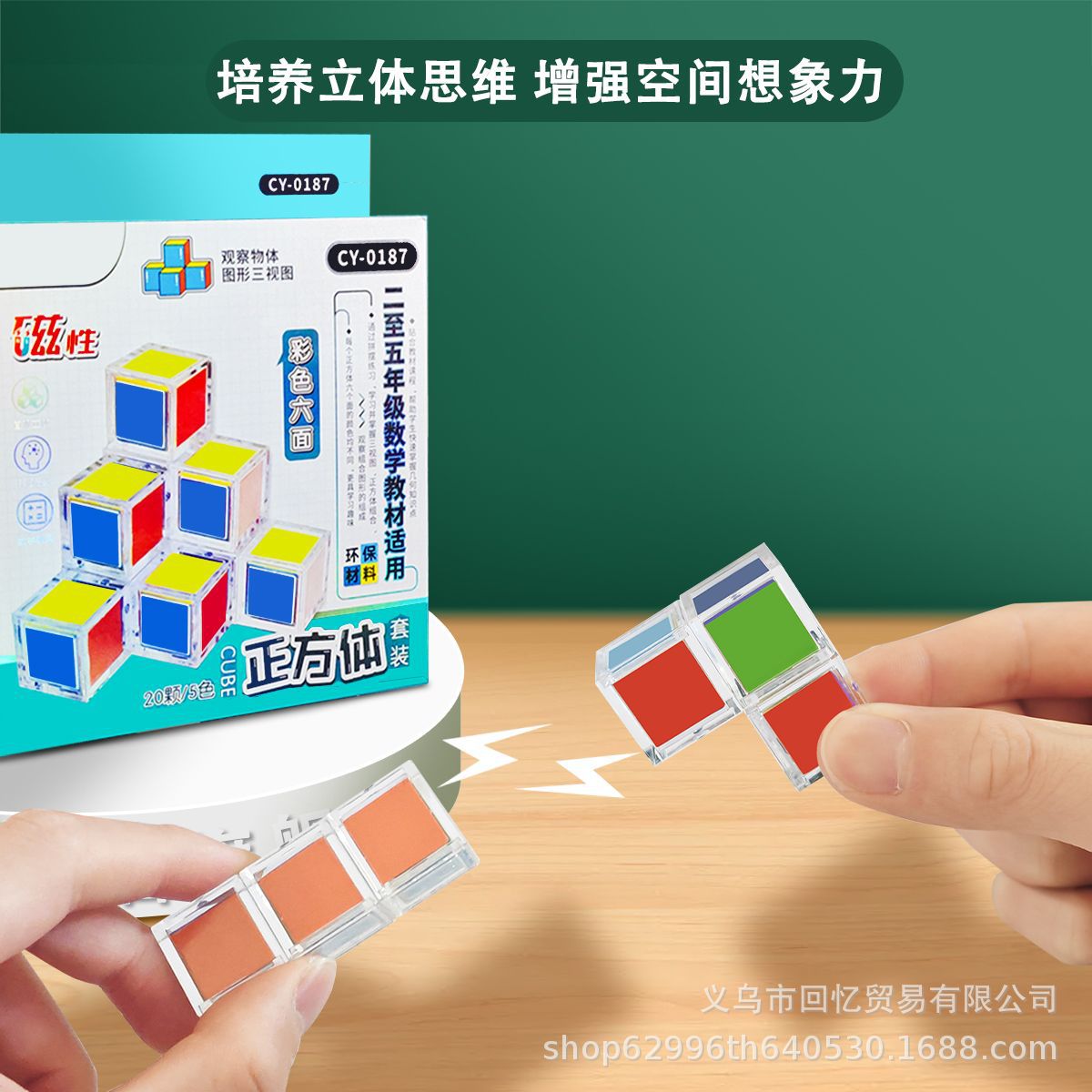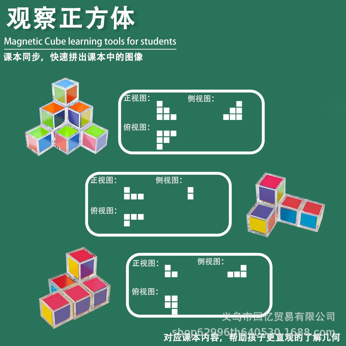 투명 마그네틱 큐브 교육 원조 초등 학교 수학 보조 고체 기하학 광장 블록 3 뷰 빌딩 블록스토어 가기