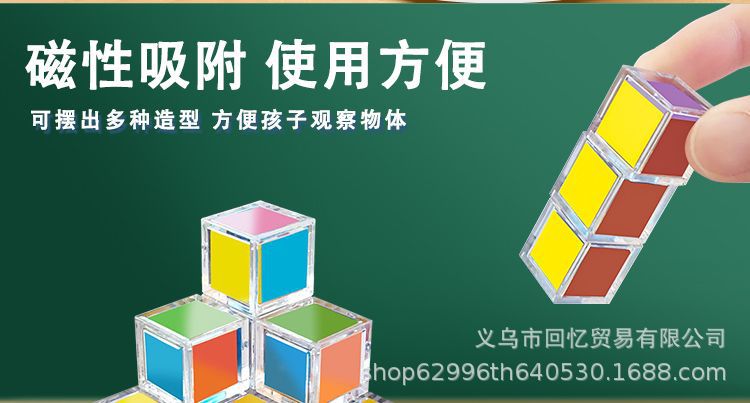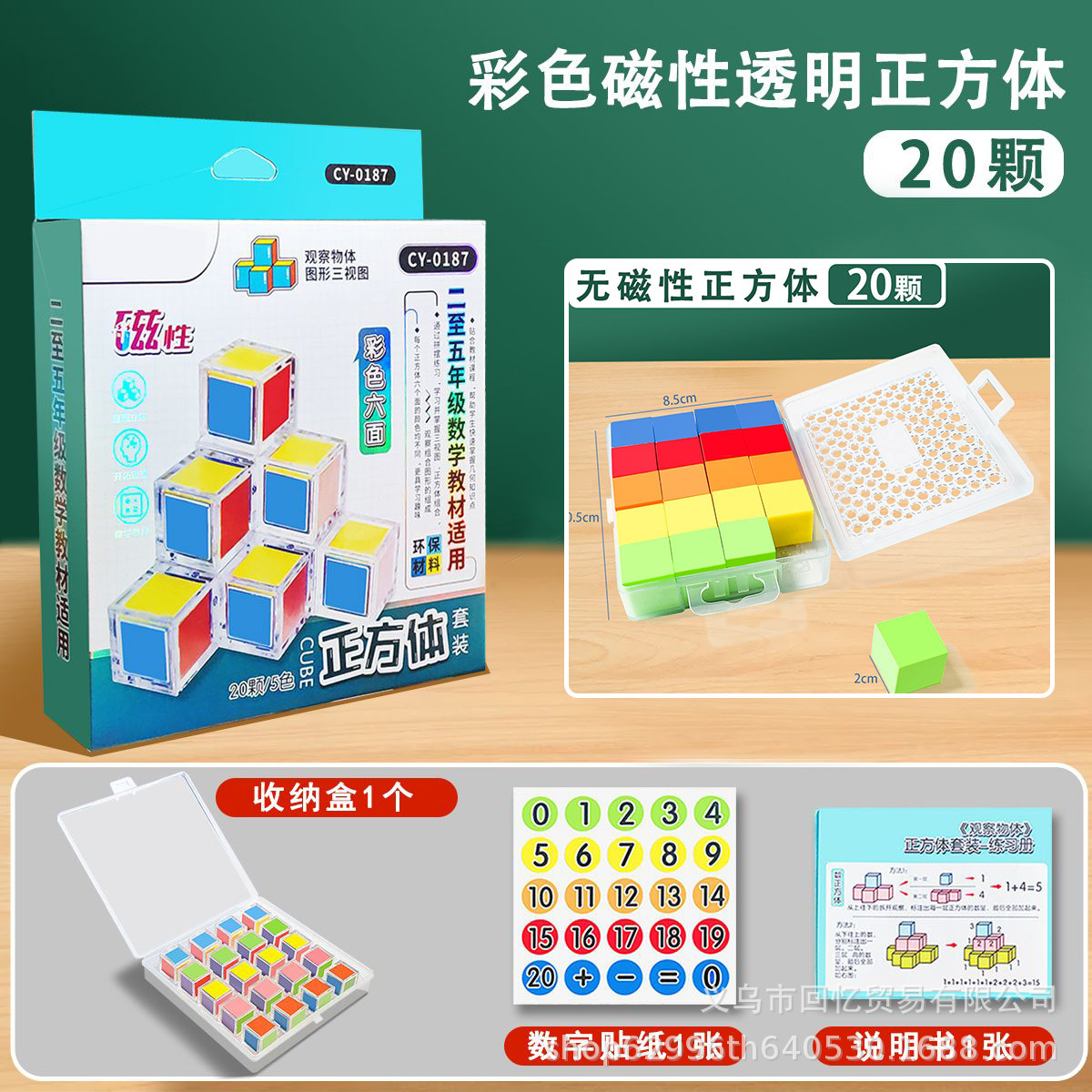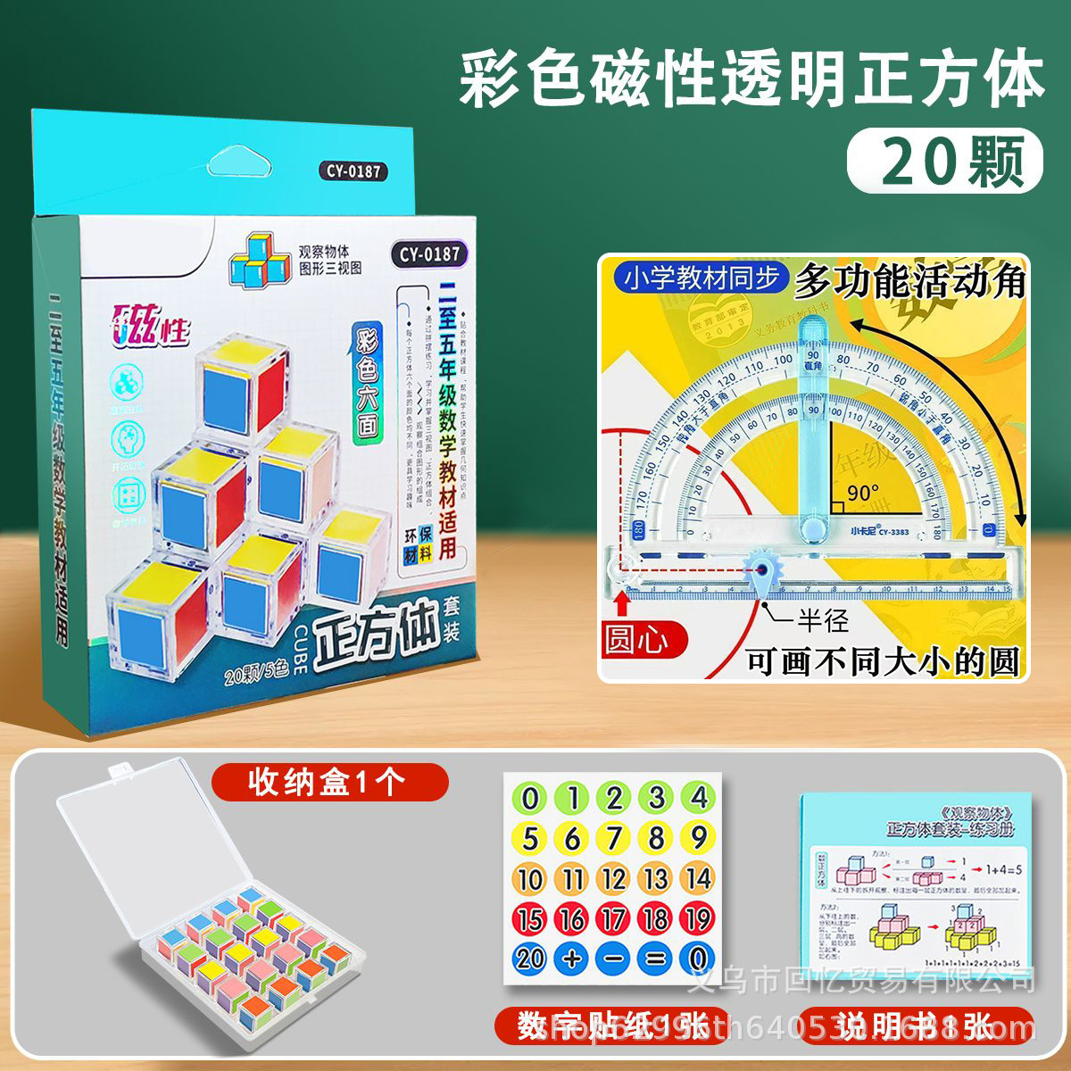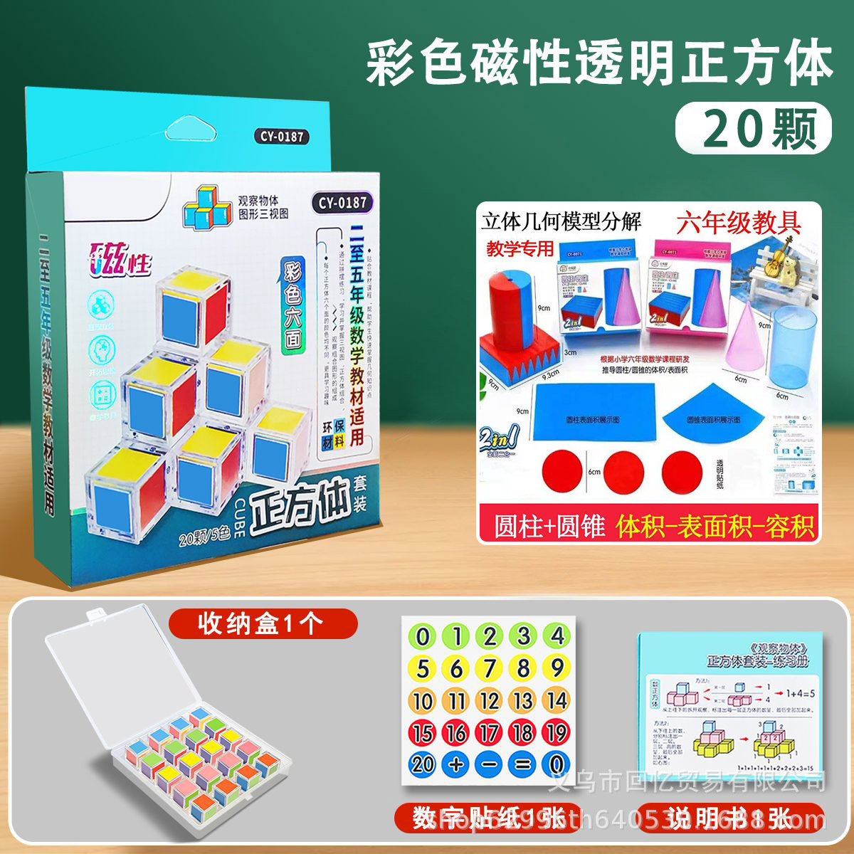 투명 마그네틱 큐브 교육 원조 초등 학교 수학 보조 고체 기하학 광장 블록 3 뷰 빌딩 블록