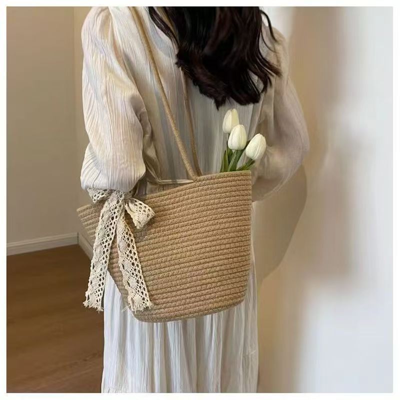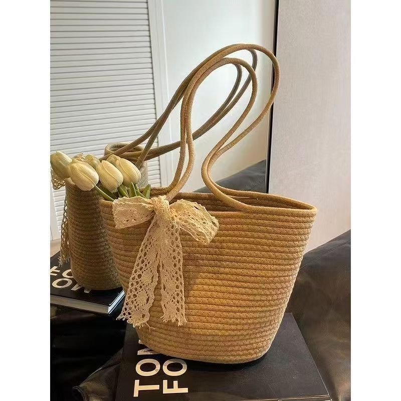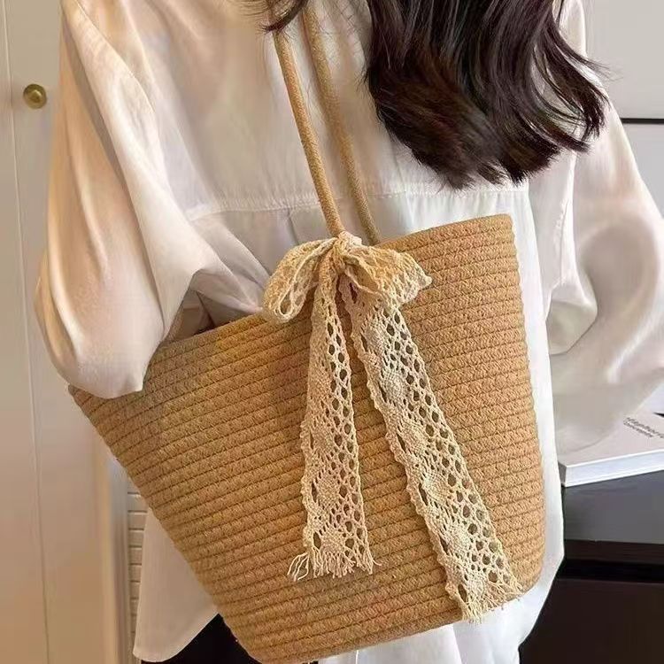 밀짚 가방 대용량 새 스타일 여름 올 매치 어깨 해변 휴가 여행 비치 토트 백 짠 북유럽 스타일스토어 가기
