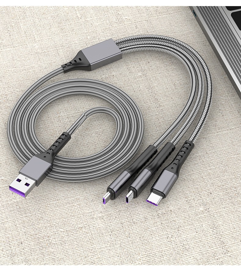 【产品亮点】:一拖三设计,渔网编加粗有感强烈,耐拉伸,防缠绕,智能涓流,达5A快充