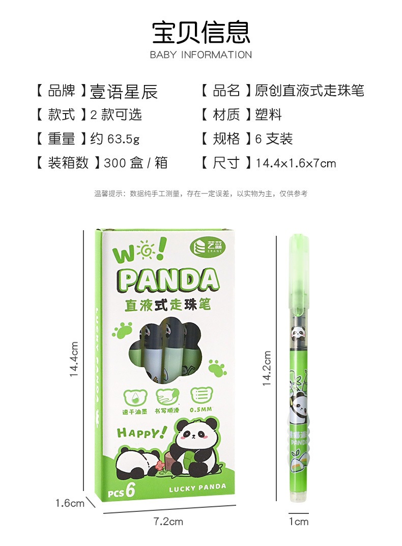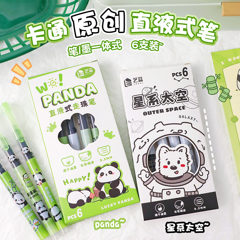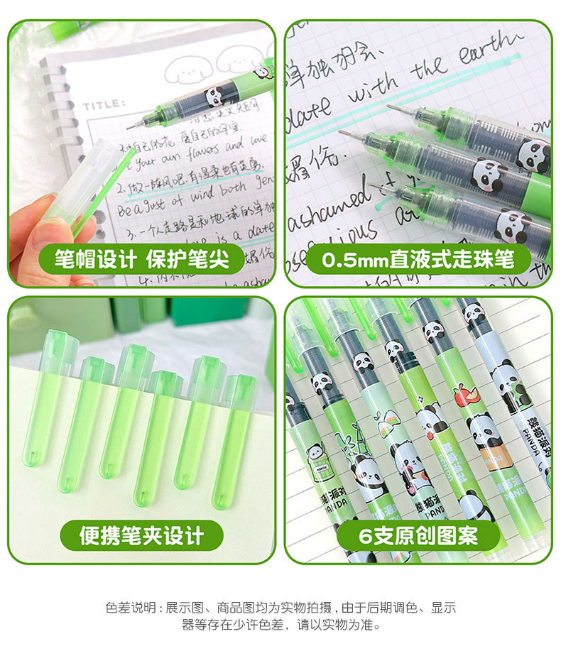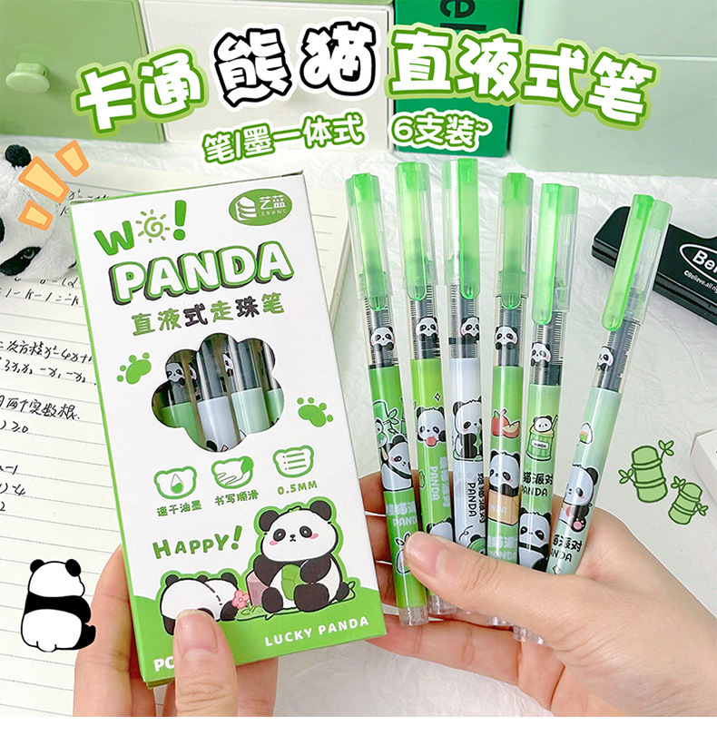 卡通熊猫中性笔学生直液式走珠笔办公室签字笔可爱速干水笔刷题笔스토어 가기