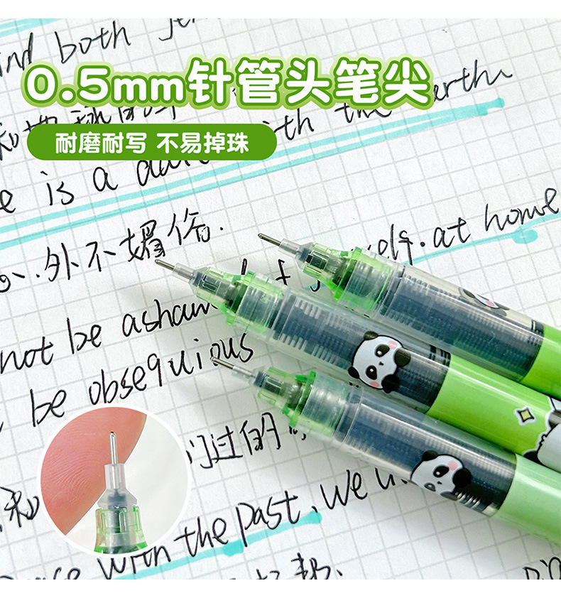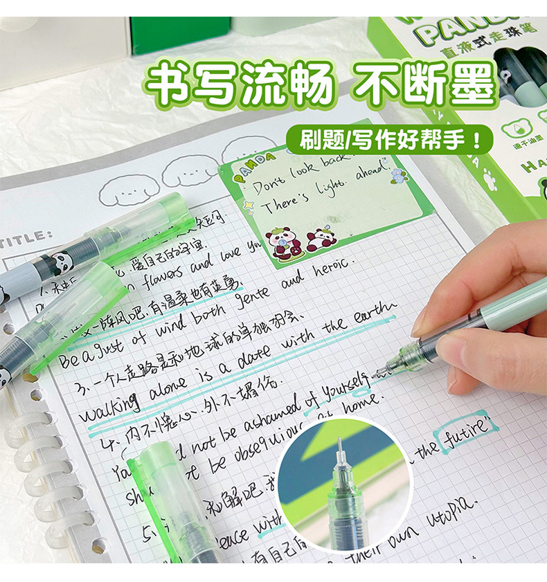 卡通熊猫中性笔学生直液式走珠笔办公室签字笔可爱速干水笔刷题笔