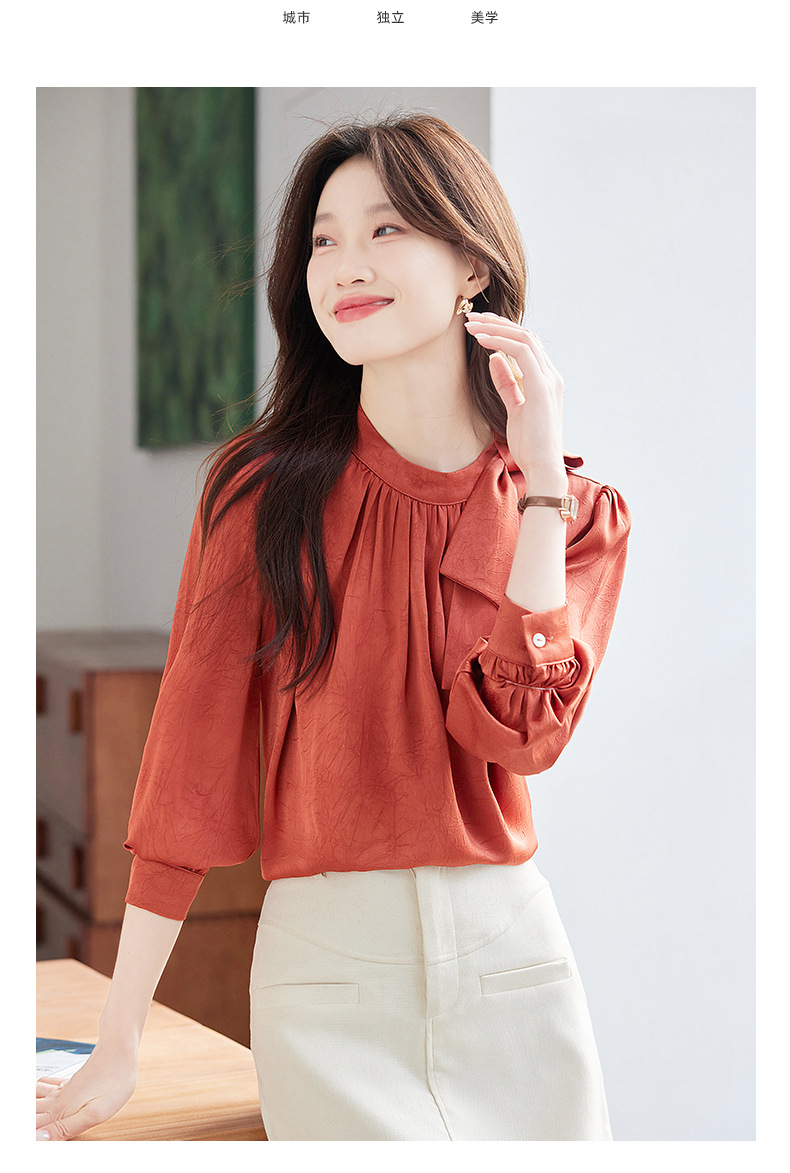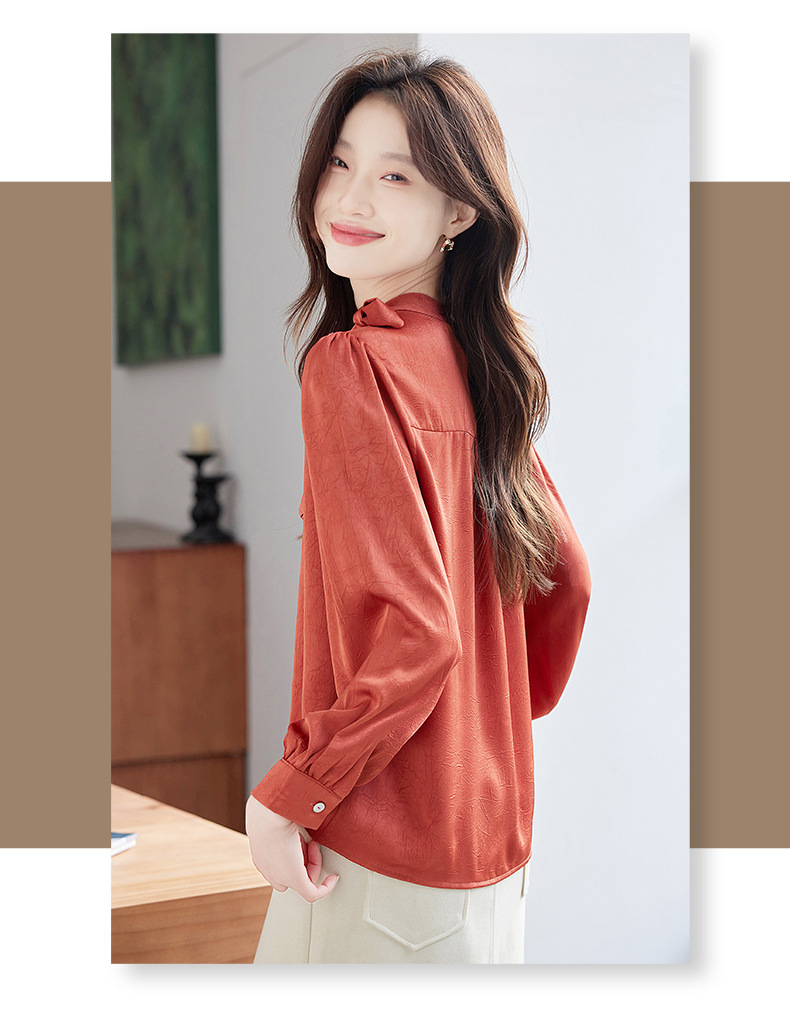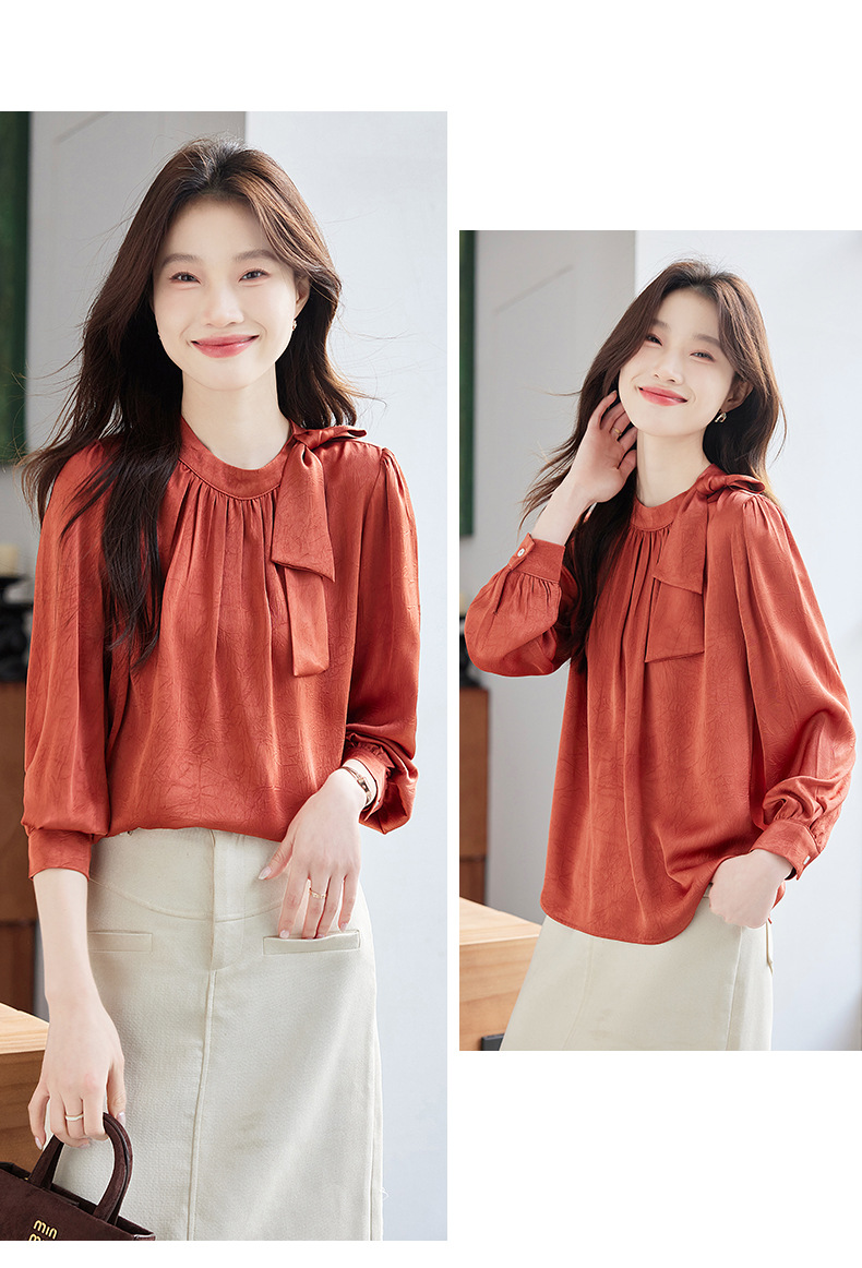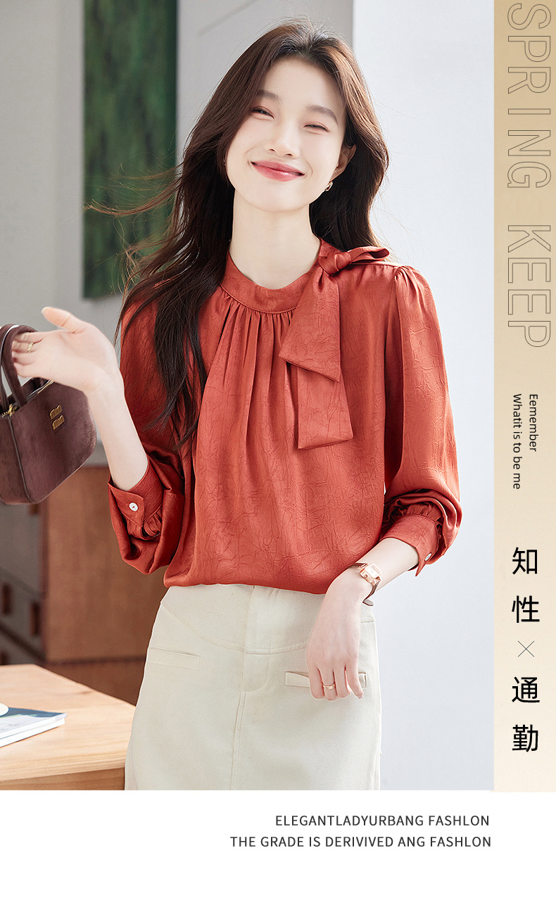 봄 활 셔츠 여성 고급 기질 전문 착용 인터뷰 긴팔 새틴 프렌치 레이스 업 세련된 탑스토어 가기