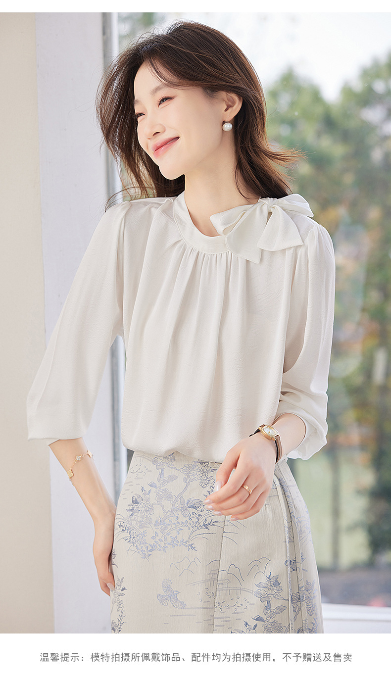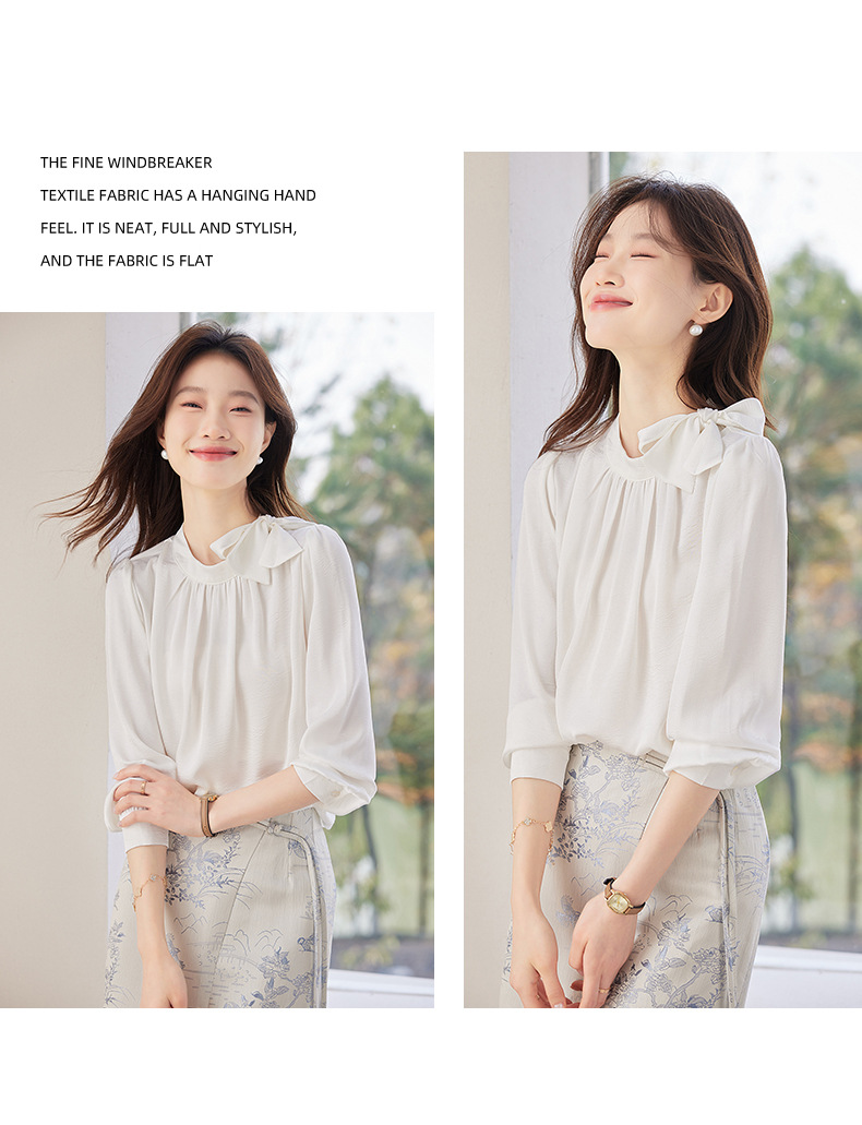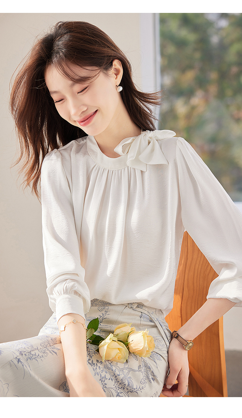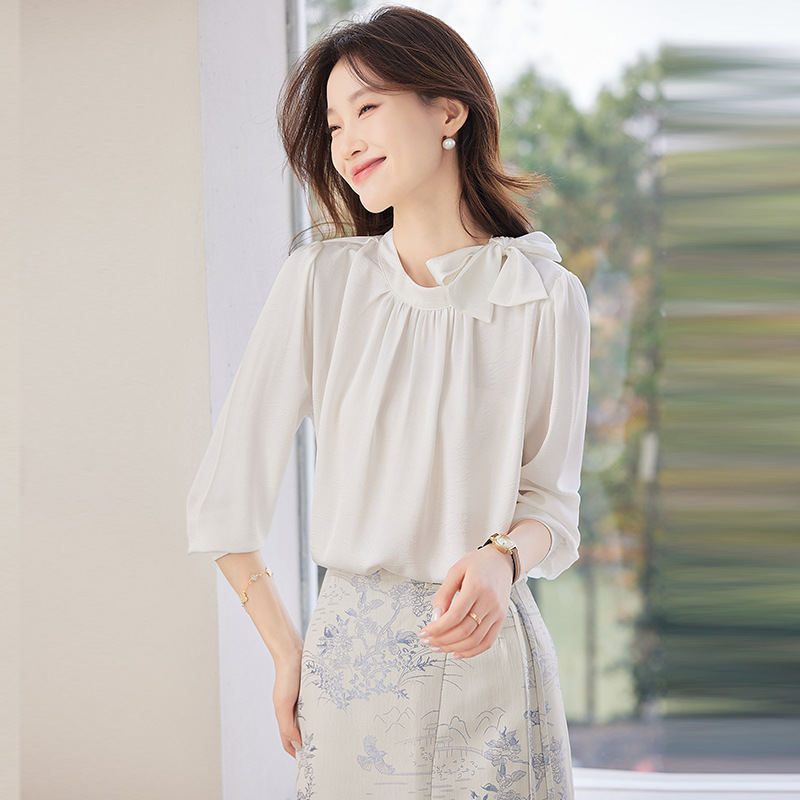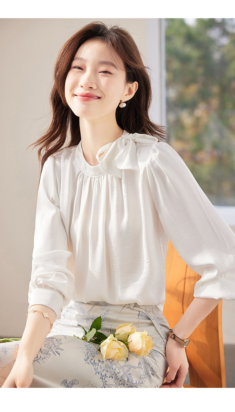 봄 활 셔츠 여성 고급 기질 전문 착용 인터뷰 긴팔 새틴 프렌치 레이스 업 세련된 탑스토어 가기