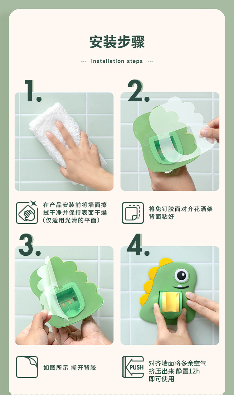 3D 만화 비 천공 샤워 브래킷 고정 아티팩트 욕실 샤워 헤드 조절 가능한 교수형 시트 노즐 벽 좌석 바닥스토어 가기