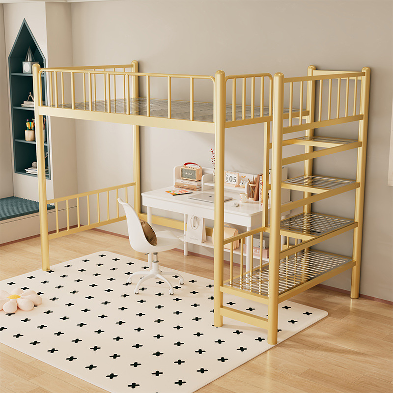 • 황금색 경사 사다리 로프트 침대 - 스테인레스 스틸 소재 (테이블과 의자 제외)