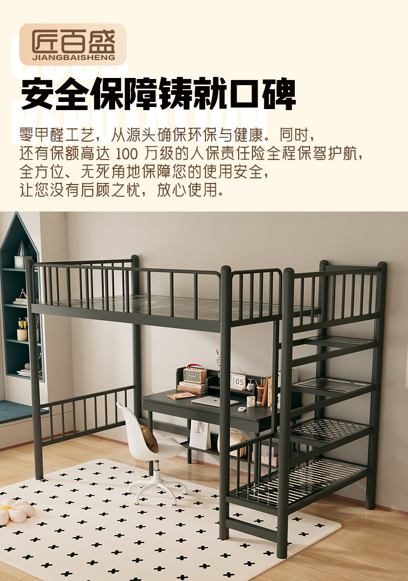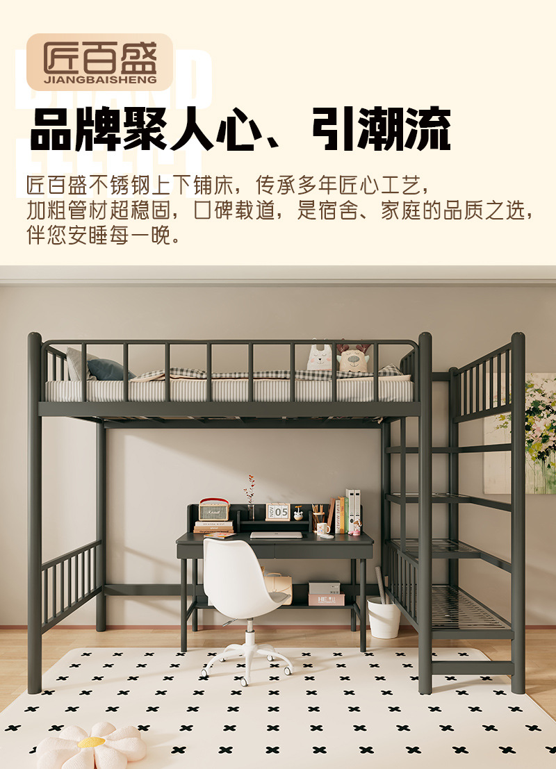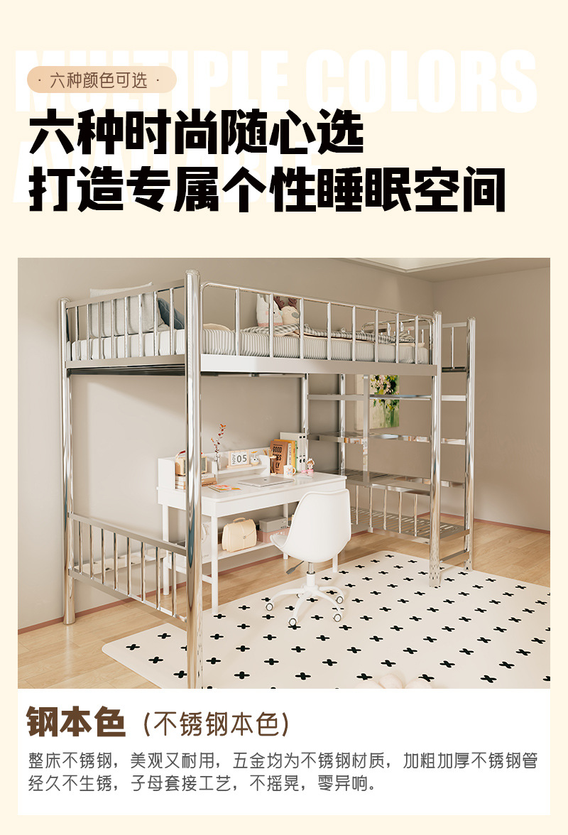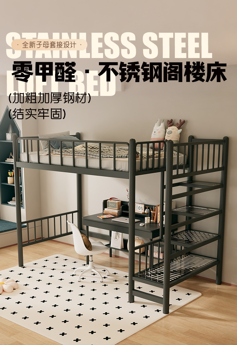 스테인리스 이층침대 조합 복층형 2층 싱글침대 침대 아래 책상 로프트 침대 프레임 무료 배송 일체형 학생침대