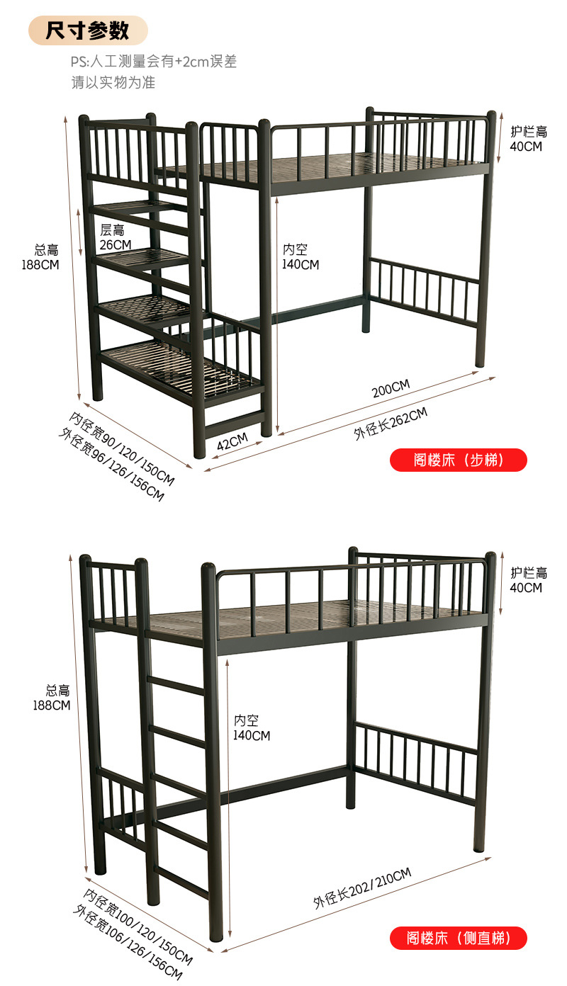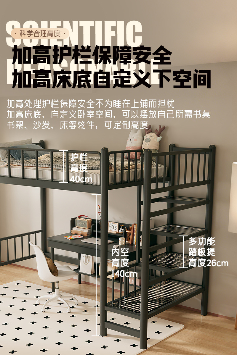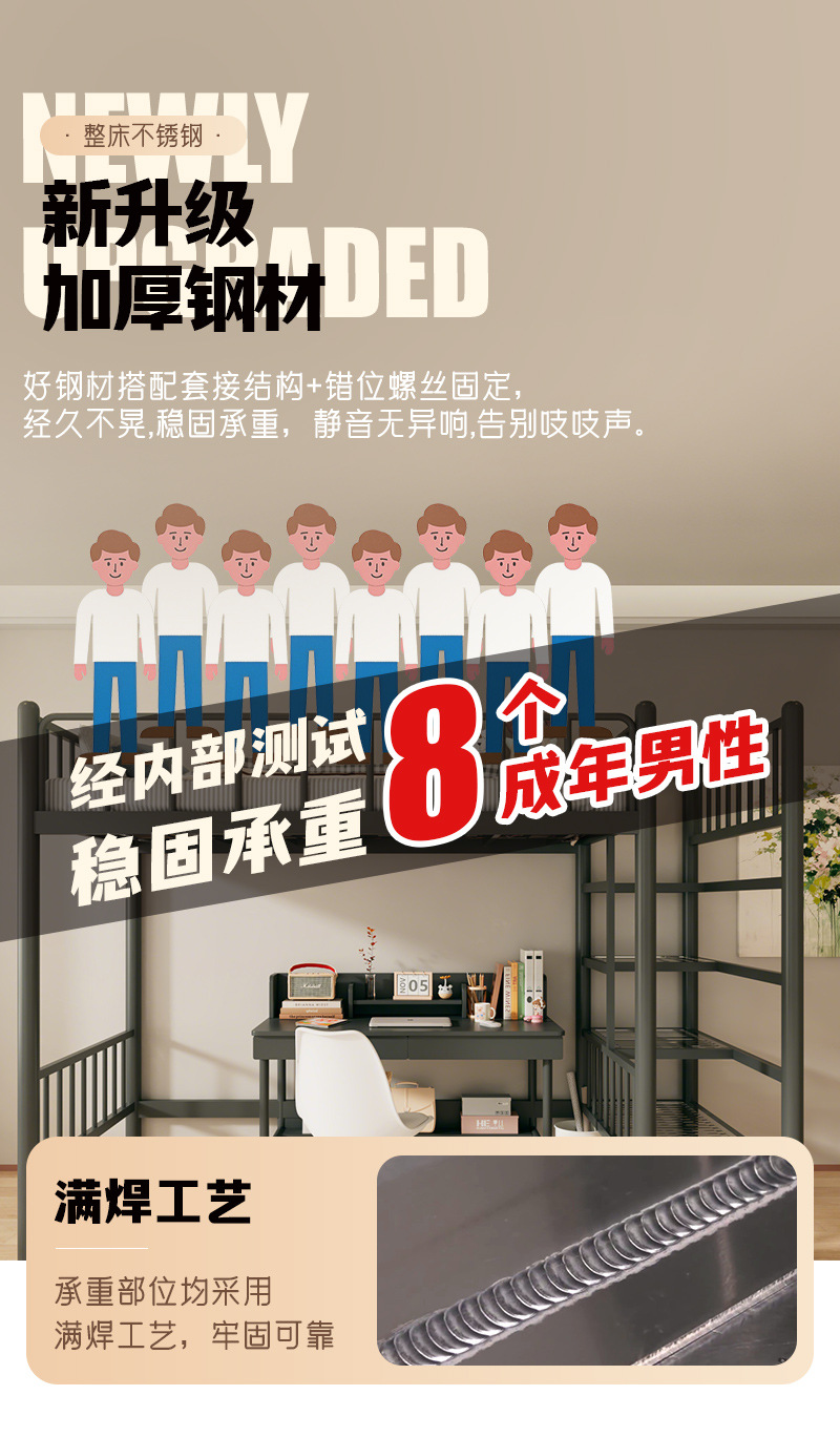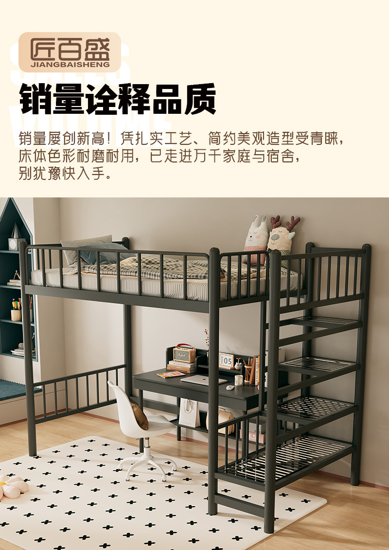 스테인리스 이층침대 조합 복층형 2층 싱글침대 침대 아래 책상 로프트 침대 프레임 무료 배송 일체형 학생침대