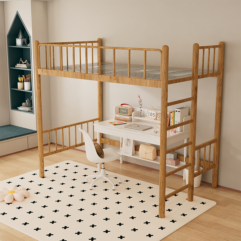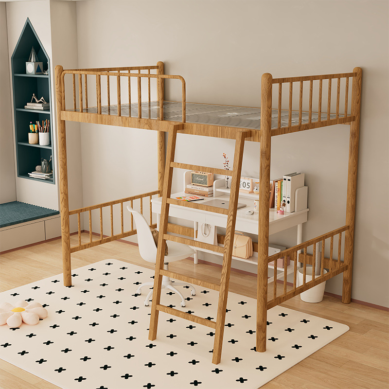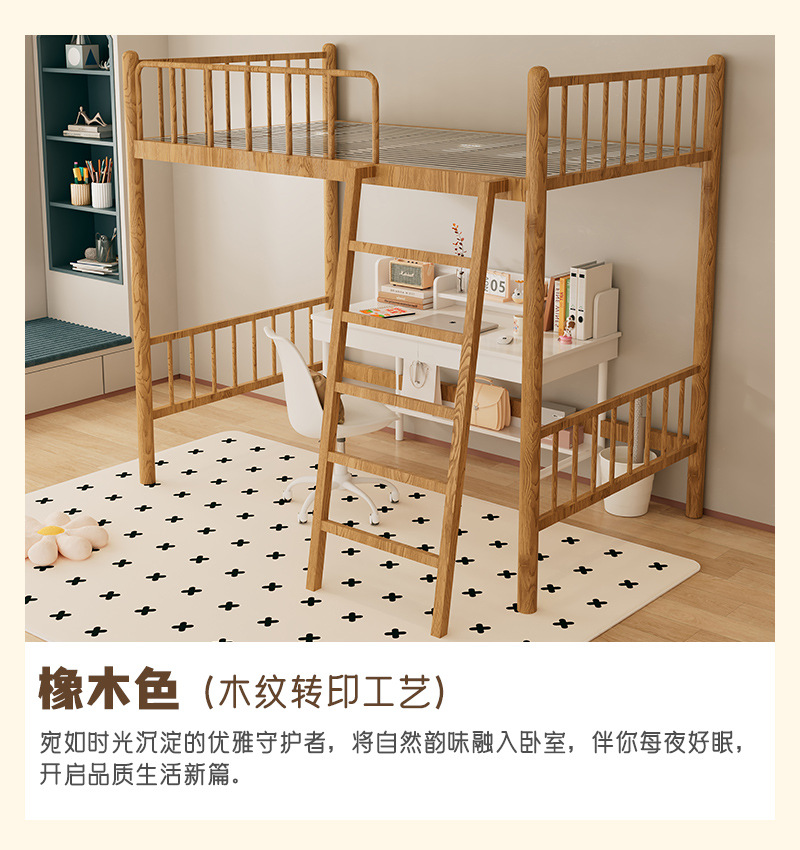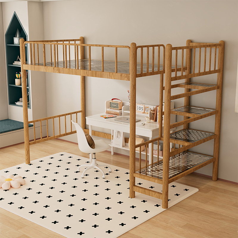 • 오크색 측면 직선 사다리 로프트 침대 - 스테인레스 스틸 소재 (테이블과 의자 제외)
