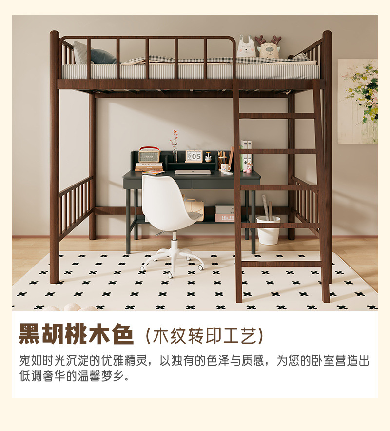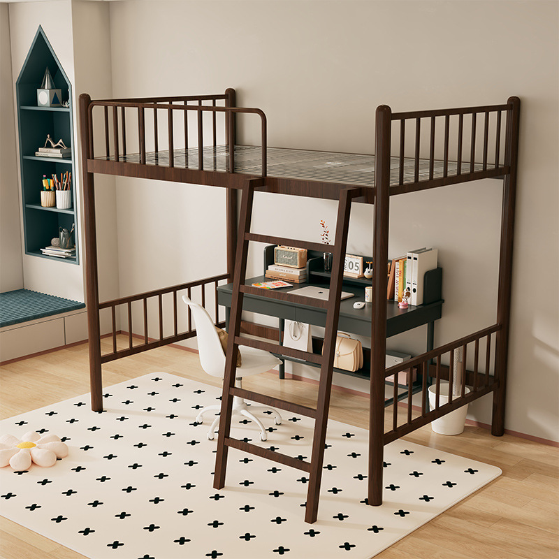• 월넛 컬러 측면 직선 사다리 로프트 침대 - 스테인레스 스틸 소재 (테이블과 의자 제외)