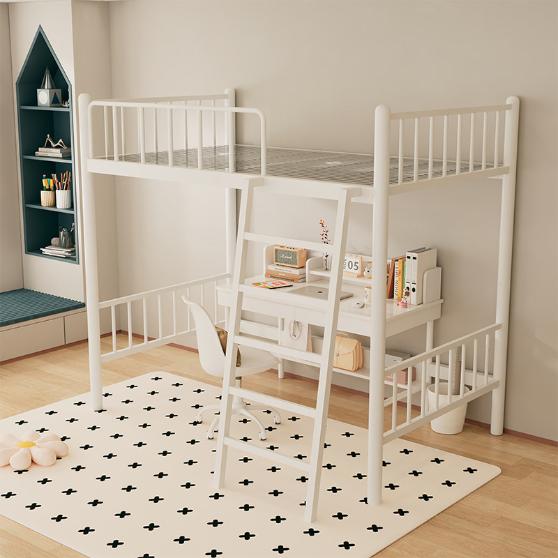 • 흰색 측면 직선 사다리 로프트 침대 - 스테인레스 스틸 재질(테이블과 의자 제외)
