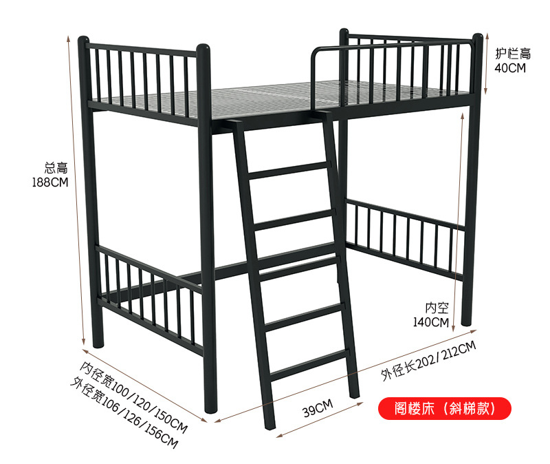 • 블랙 사이드 스트레이트 사다리 로프트 침대 - 스테인레스 스틸 소재 (테이블과 의자 제외)