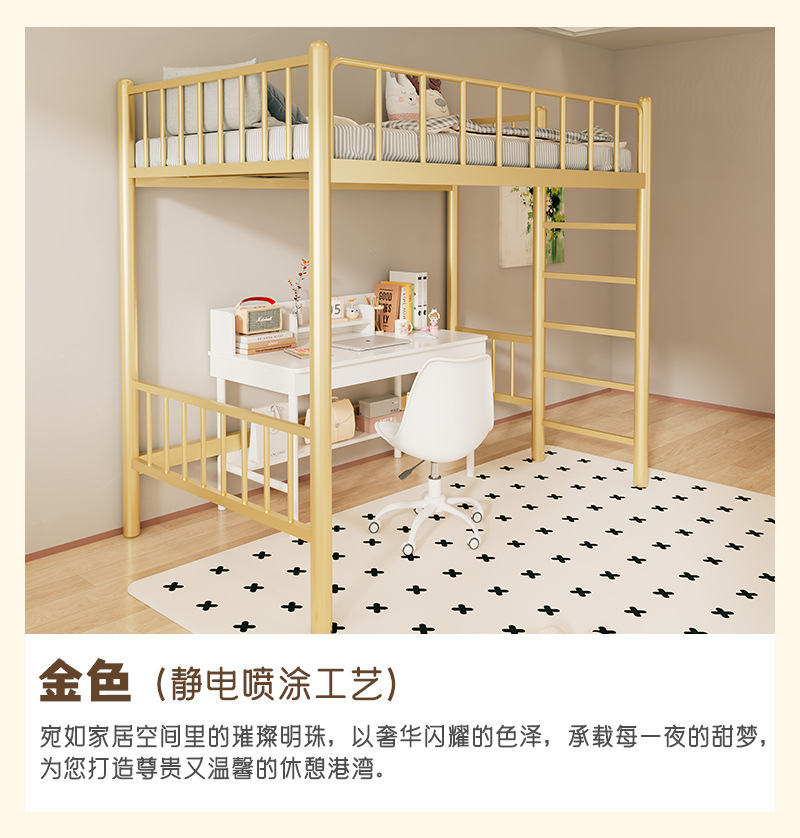 • 골드 사이드 직선 사다리 로프트 침대 - 스테인레스 스틸 소재 (테이블과 의자 제외)