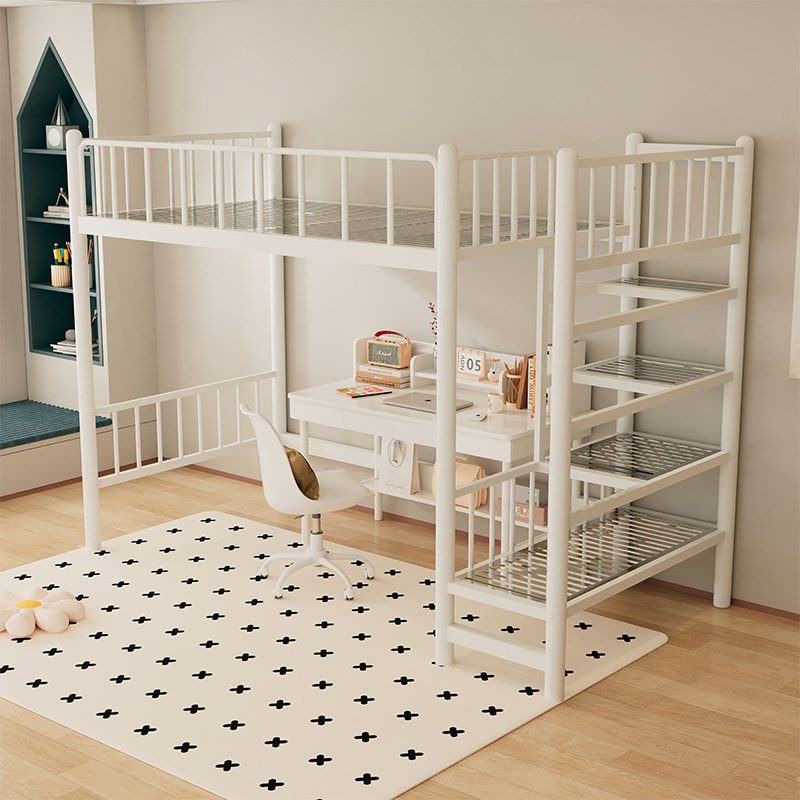 • 흰색 계단형 로프트 침대 - 스테인리스 스틸(테이블과 의자 제외)