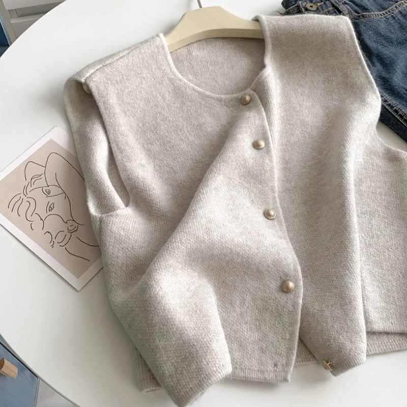 부드러운 싱글 브레스트 골드 버튼 우아한 올 매치 니트 조끼 여성 가을 및 겨울 스태킹 웨이스트 코트