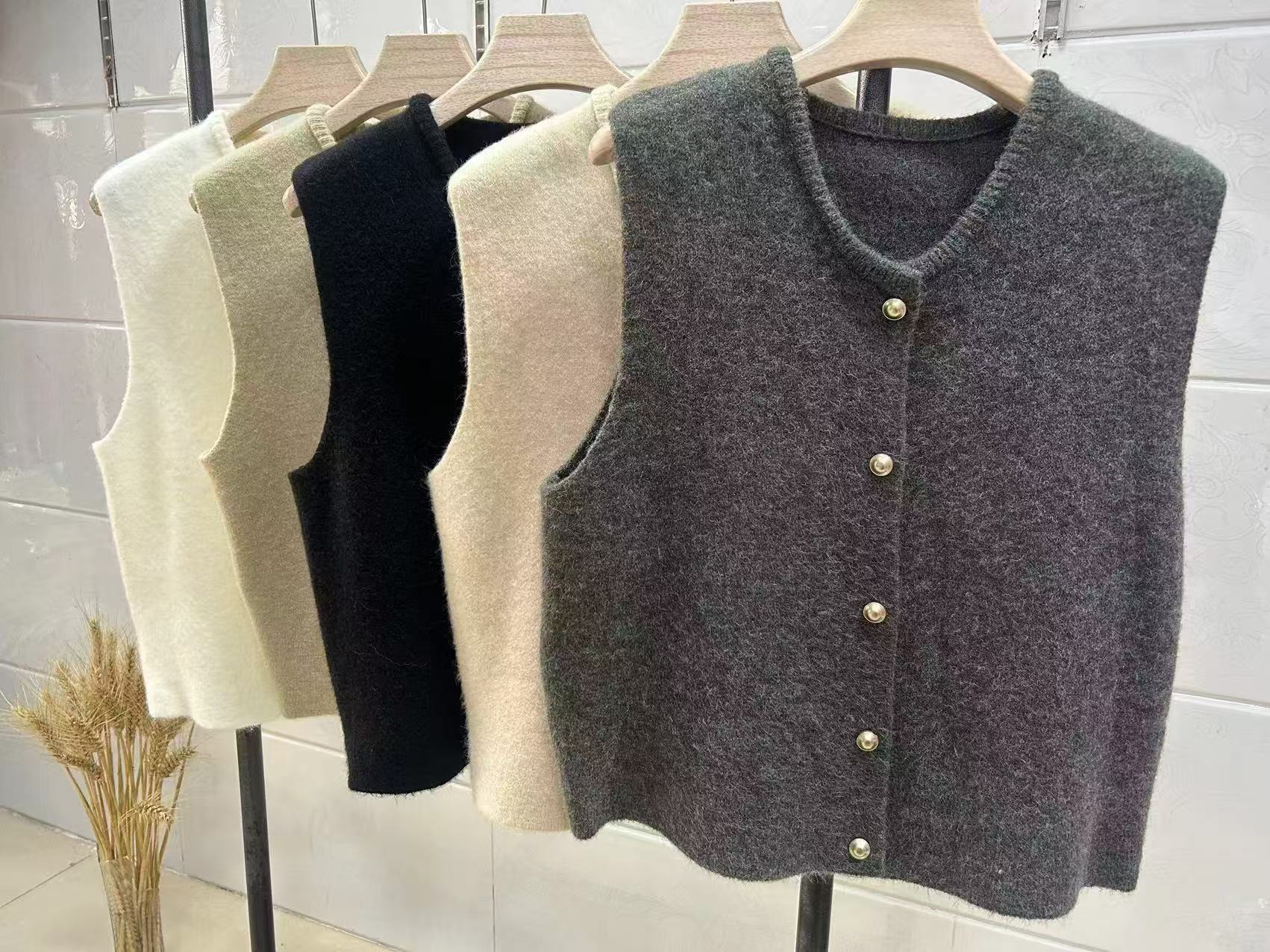 부드러운 싱글 브레스트 골드 버튼 우아한 올 매치 니트 조끼 여성 가을 및 겨울 스태킹 웨이스트 코트스토어 가기