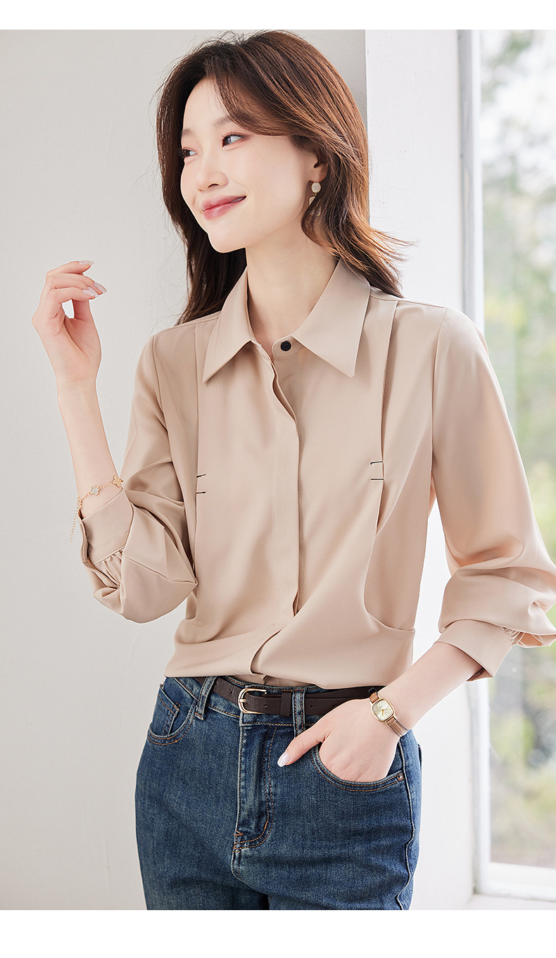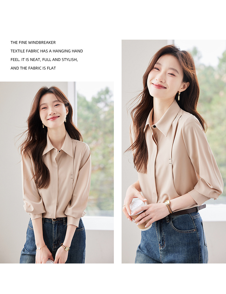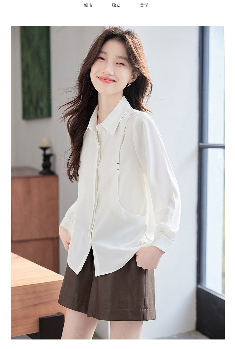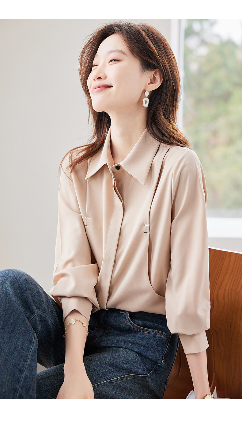 비 다림질 새틴 화이트 셔츠 여성 긴팔 대학생 고급 민감 커뮤니케이션 UGC 인터뷰 전문 셔츠 라이트 럭셔리스토어 가기