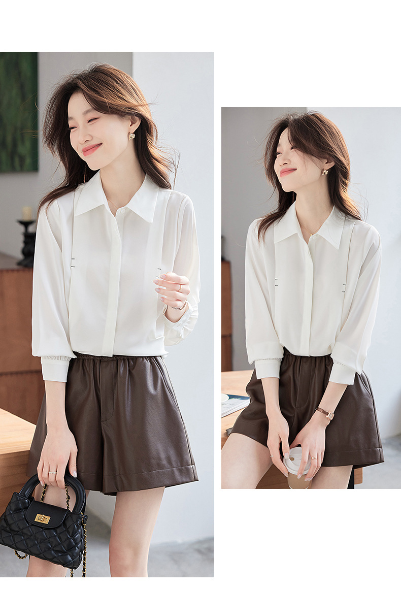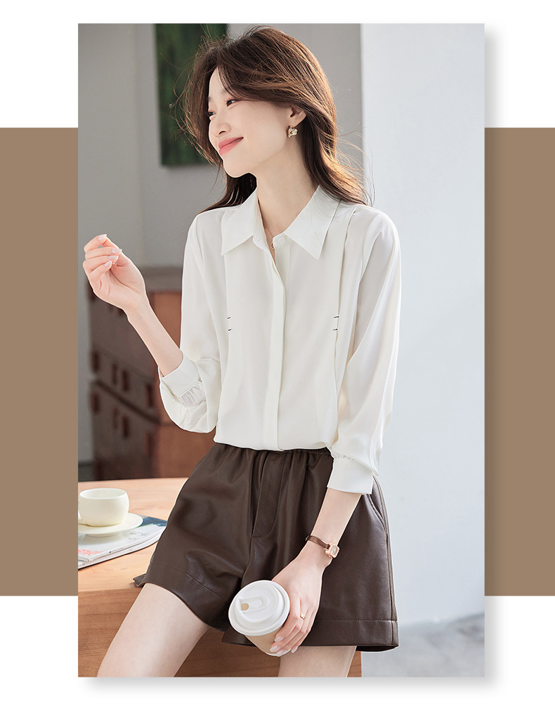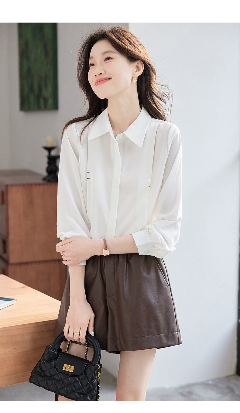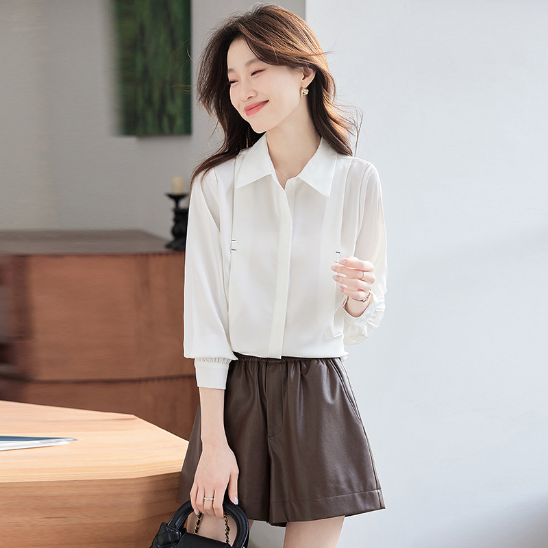 비 다림질 새틴 화이트 셔츠 여성 긴팔 대학생 고급 민감 커뮤니케이션 UGC 인터뷰 전문 셔츠 라이트 럭셔리