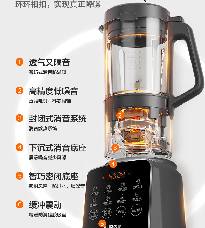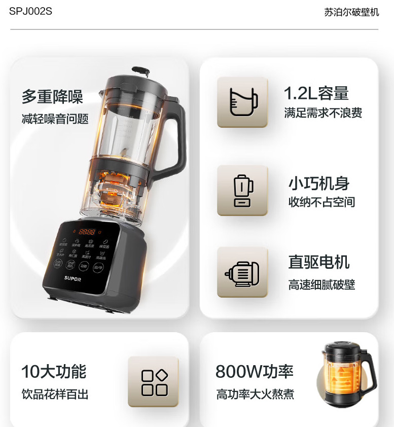 Suppor 가정용 벽 속보 기계 1.2L 두유 기계 난방 다기능 과즙 기 보충 식품 믹서 SPJ002S
