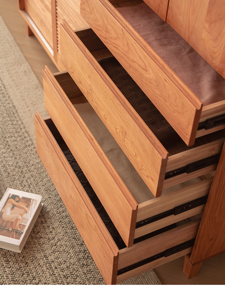 북유럽 일본식 체리 우드 옷장 풀 솔리드 우드 침실 가정용 대용량 옷장 일본식 Bmane 푸시-풀 옷장